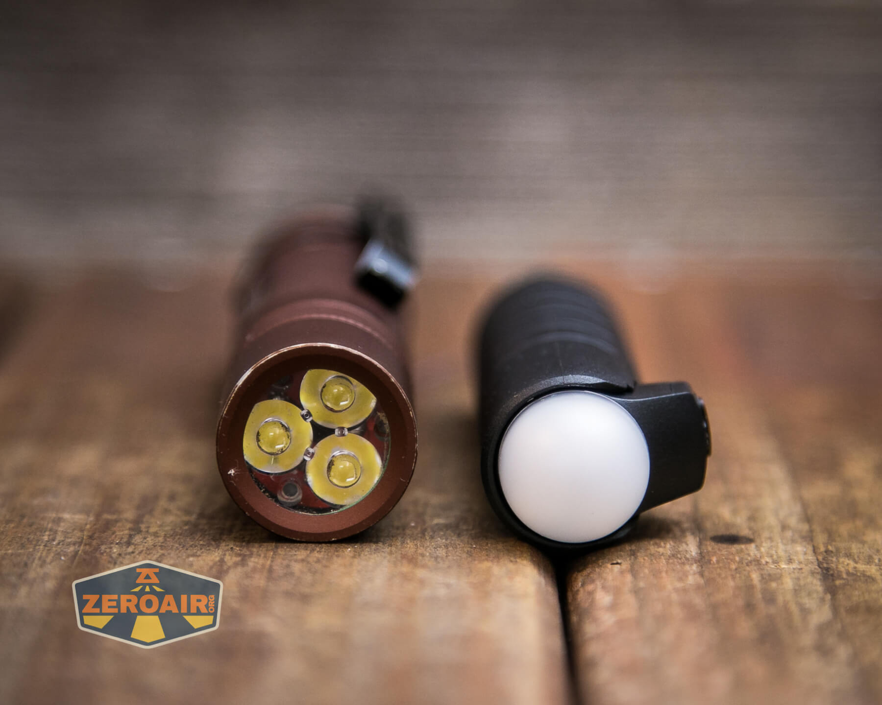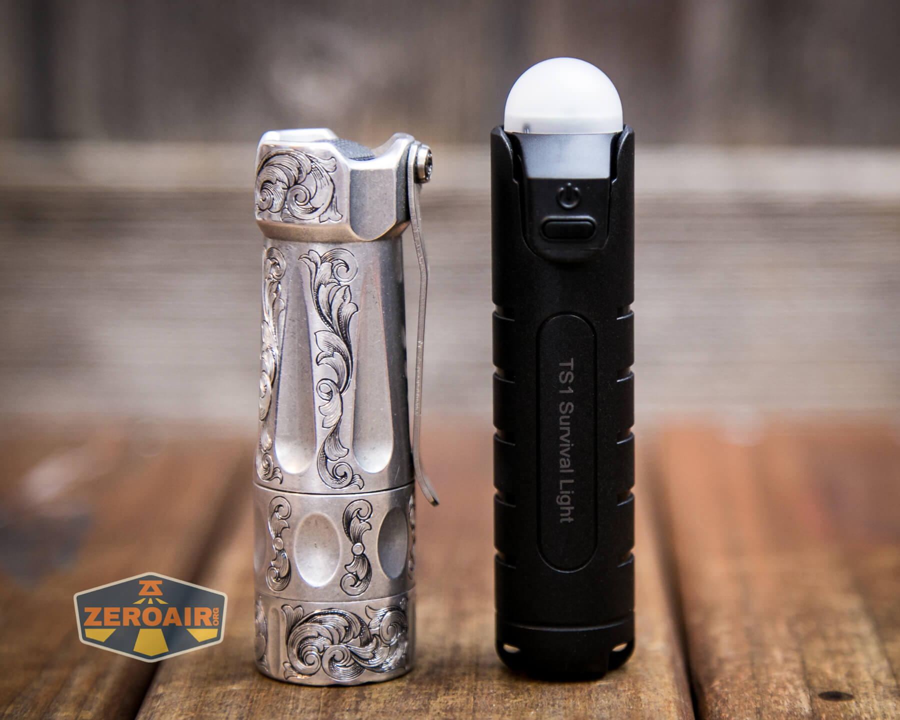 And here’s the light beside my custom-engraved TorchLAB BOSS 35, an 18350 light. I reviewed the aluminum version of that light in both 35 and 70 formats.