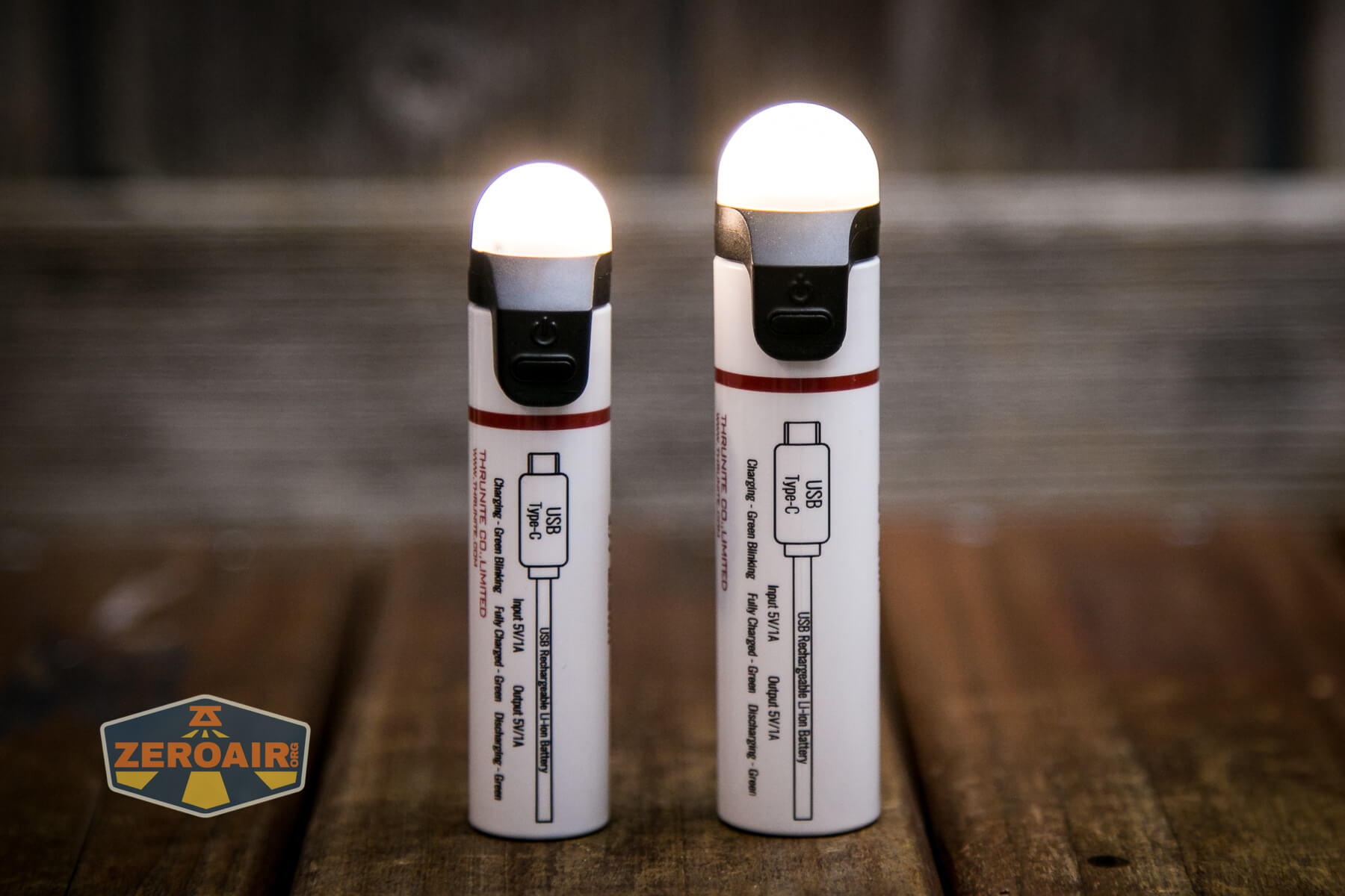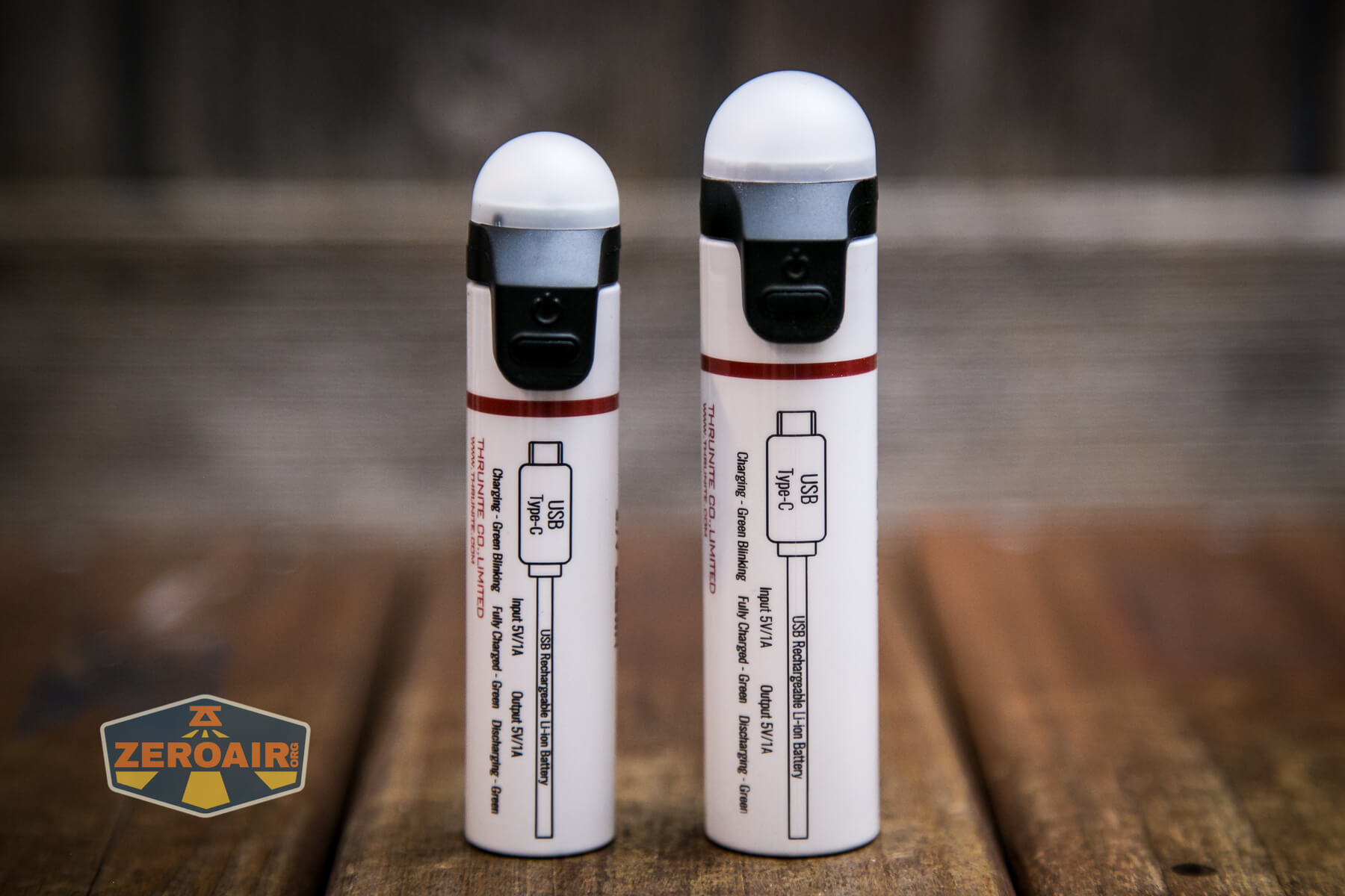 The Thrunite TS1 Self-Rescue lantern is powered by the included 18650 cell. This cell has a USB-C port on the positive end.