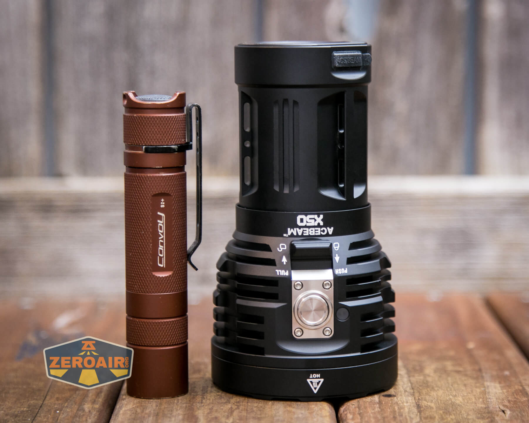 This version should be (and is!) a good bit more throwy than the other version I already tested. That’s a Cree XHP70.2 version of the Acebeam X50, and I reviewed it too.