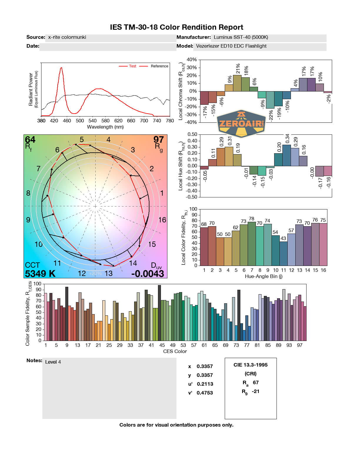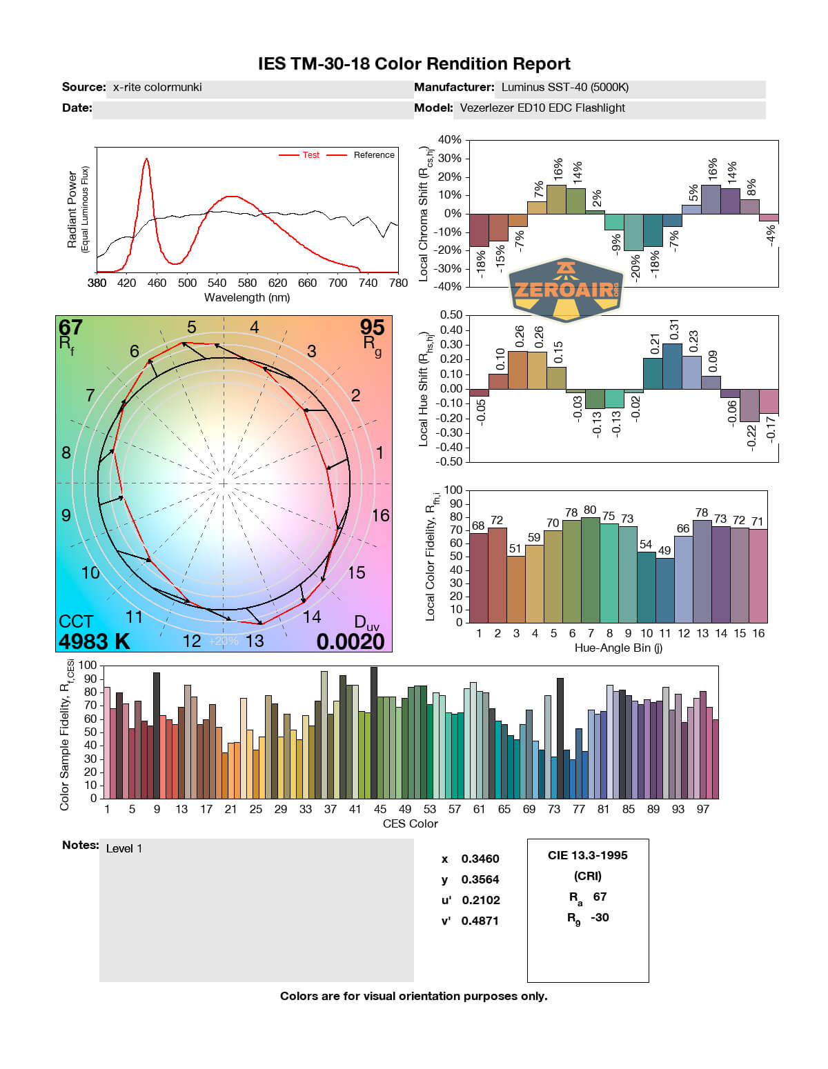 As with the original ED10, this 5000K version uses a Luminus SST-40. As stated by Vezerlezer, this one is 5000K, and the CCT creeps up the harder the emitter is driven. So on the higher modes, we see it topping out around 5300K. The CRI is still not fantastic, at around 67.