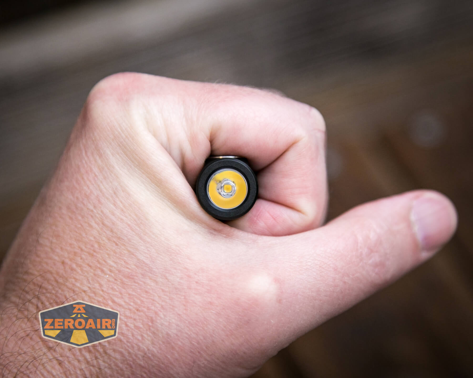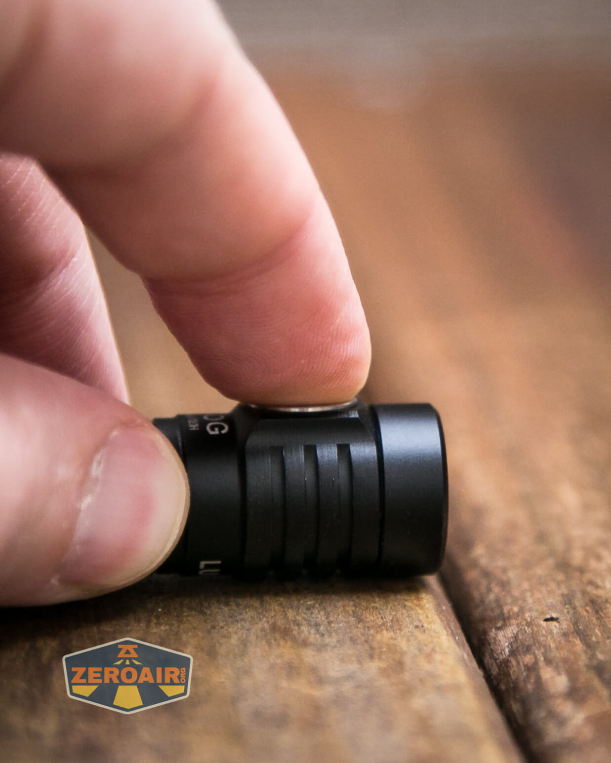 The user interface is a single side clicky. An e-switch, with a red indicator. The switch looks huge on this tiny light, but overall it’s still not a huge switch.