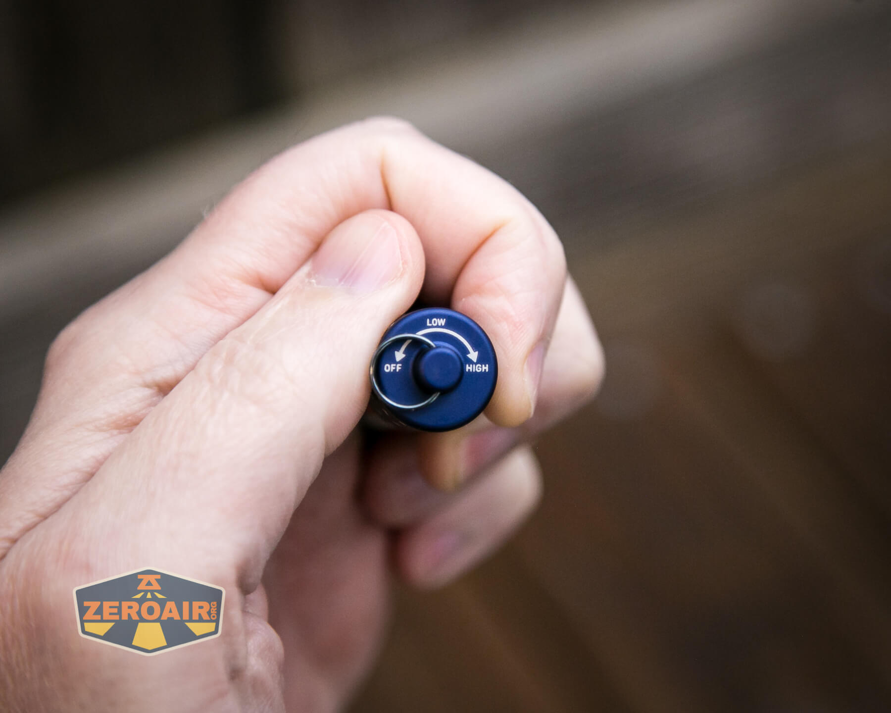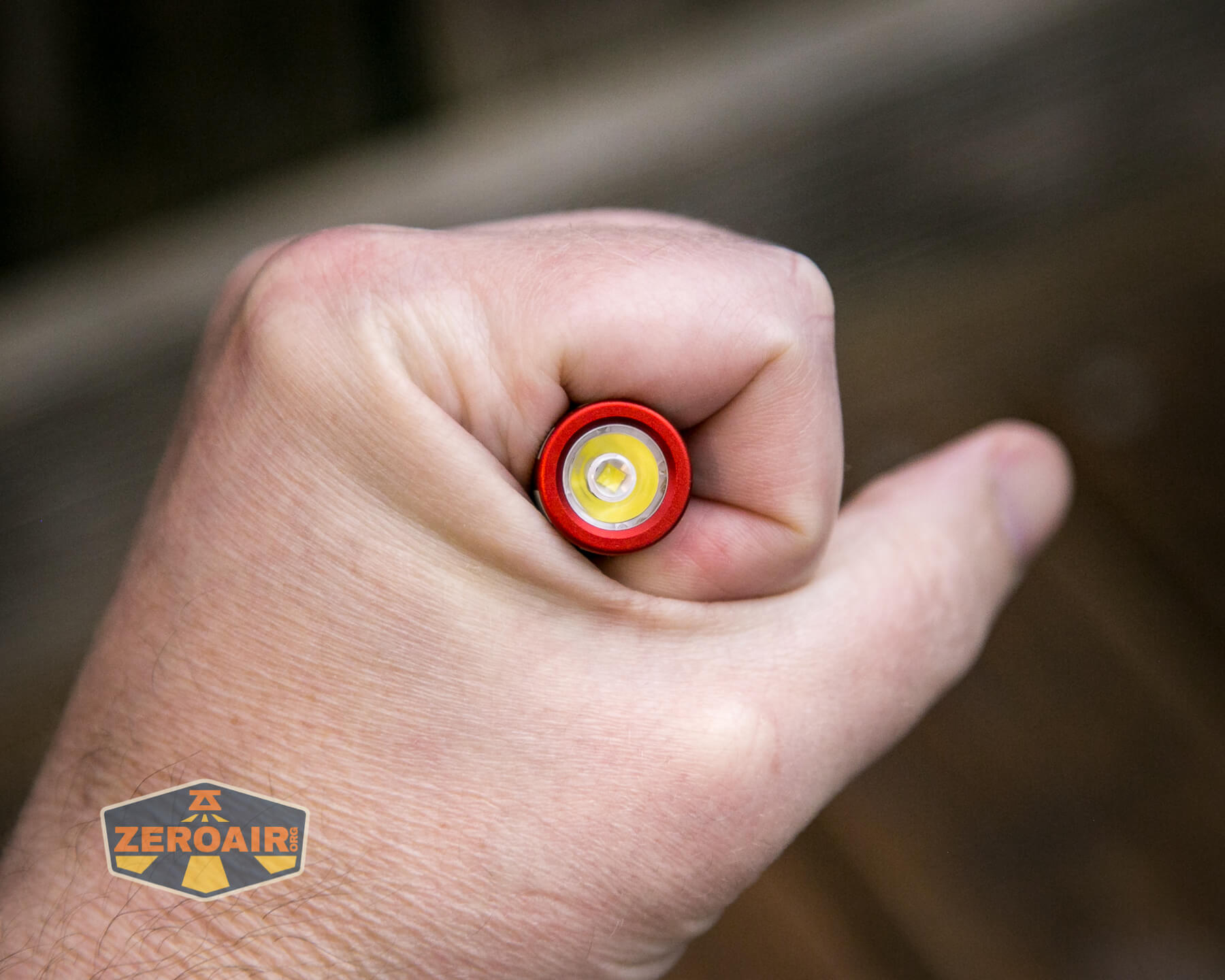 The Olight i1R2 Pro keychain flashlight is a twisty. There are markings on the tailcap to help a user know what to do, but of course, it’s very simple.