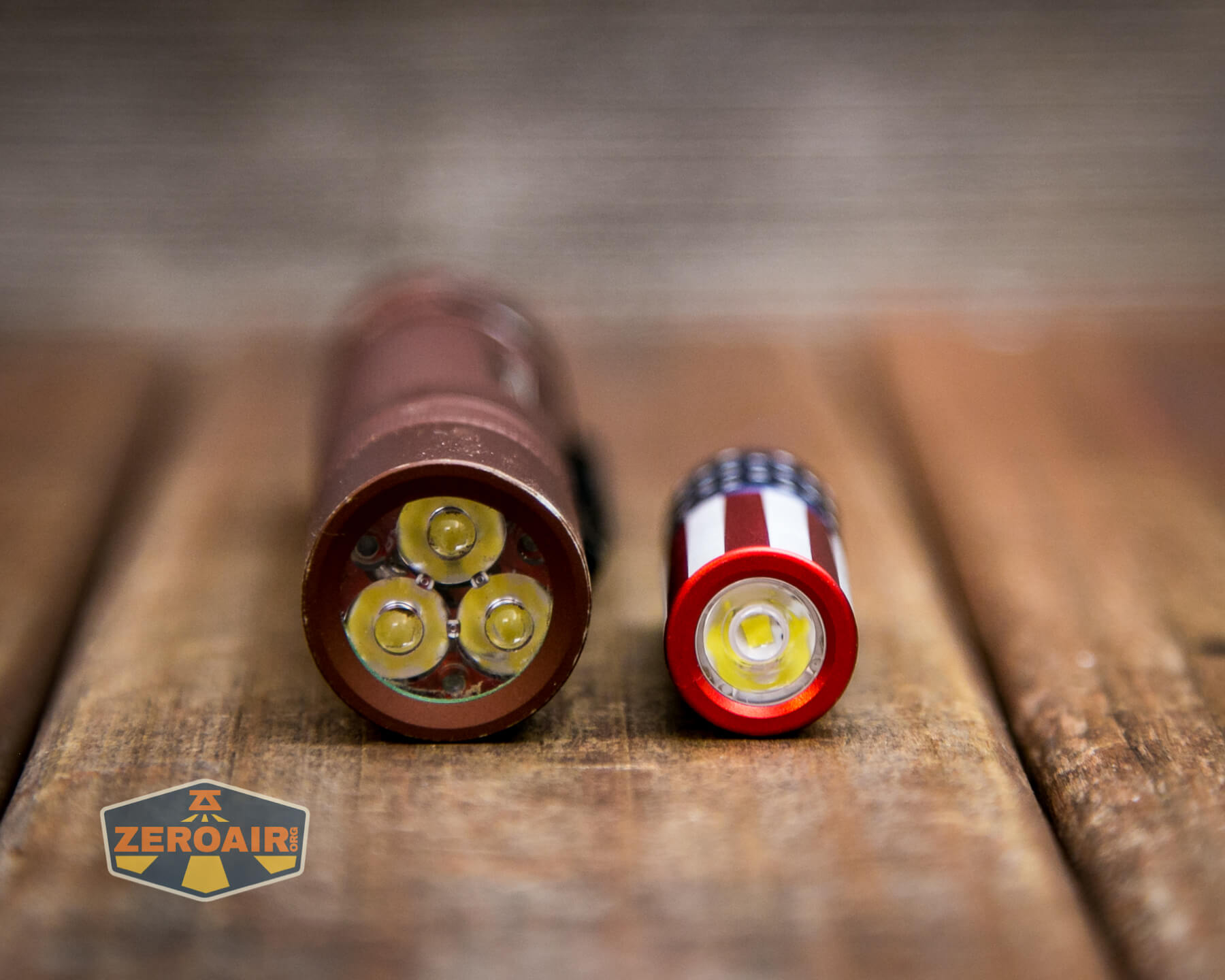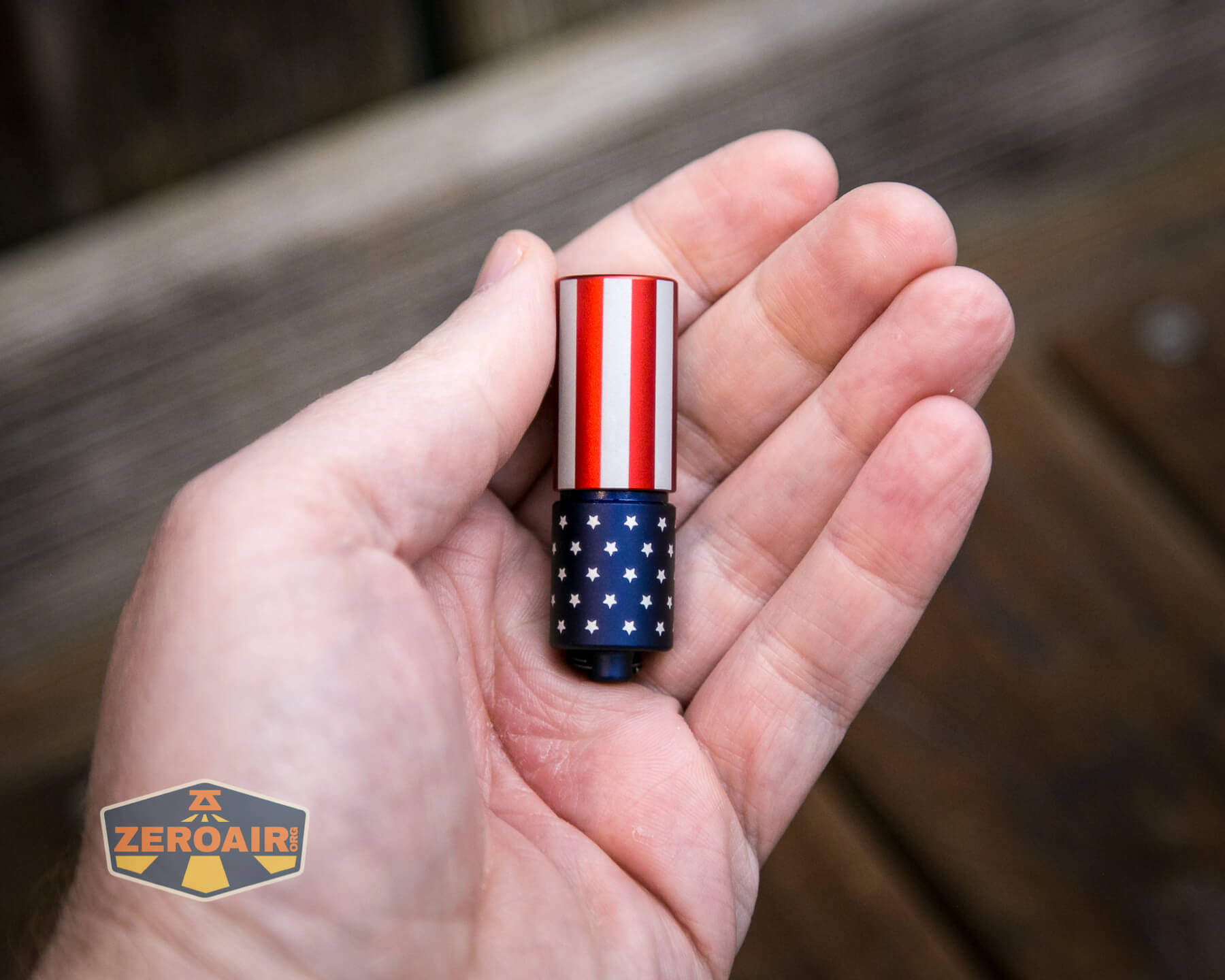 It looks like this Stars and Stripes version makes three total editions of the i1R 2 Pro flashlight by Olight. There’s also black and orange! Their body has a bit more texture milled into the sides, as well as a different color. I think internally they are the same, though.