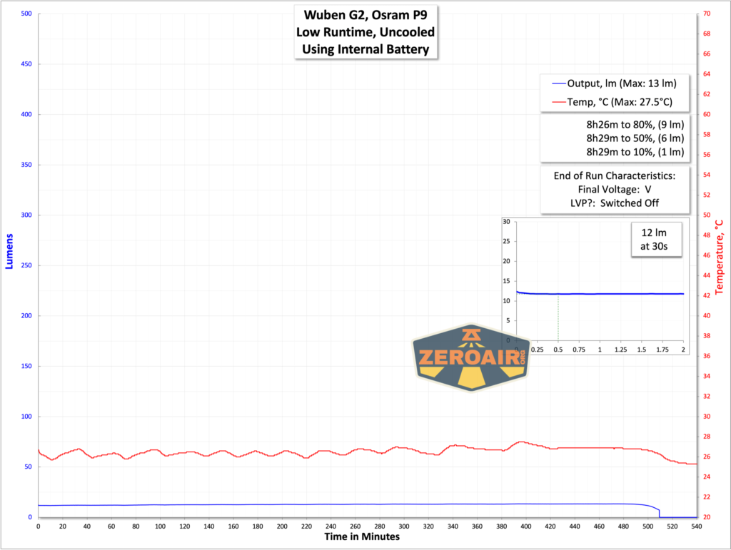 ^ Measurement disclaimer: Testing flashlights is my hobby. I use hobbyist-level equipment for testing, including some I made myself. Try not to get buried in the details of manufacturer specifications versus measurements recorded here; A certain amount of difference (say, 10 or 15%) is perfectly reasonable.