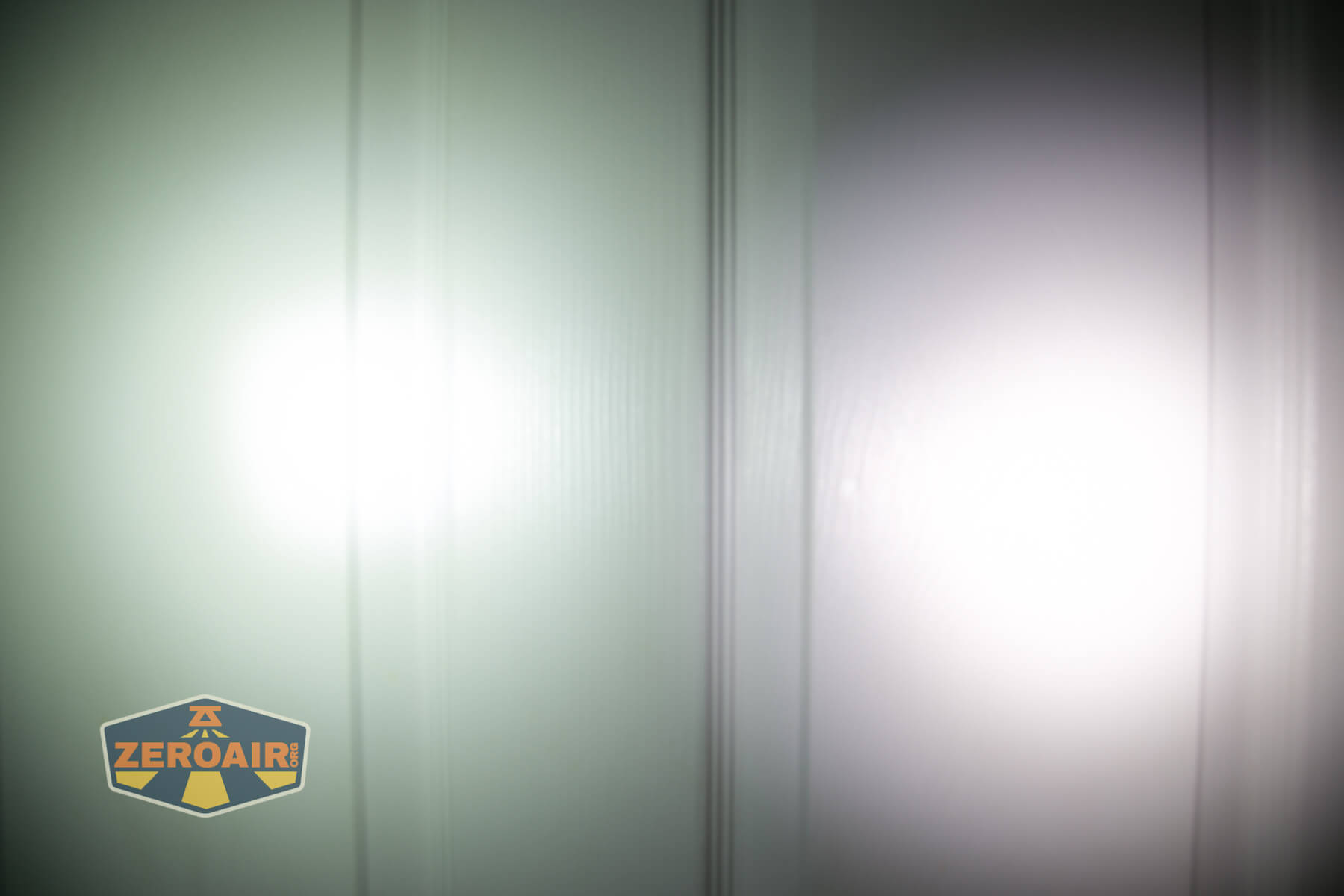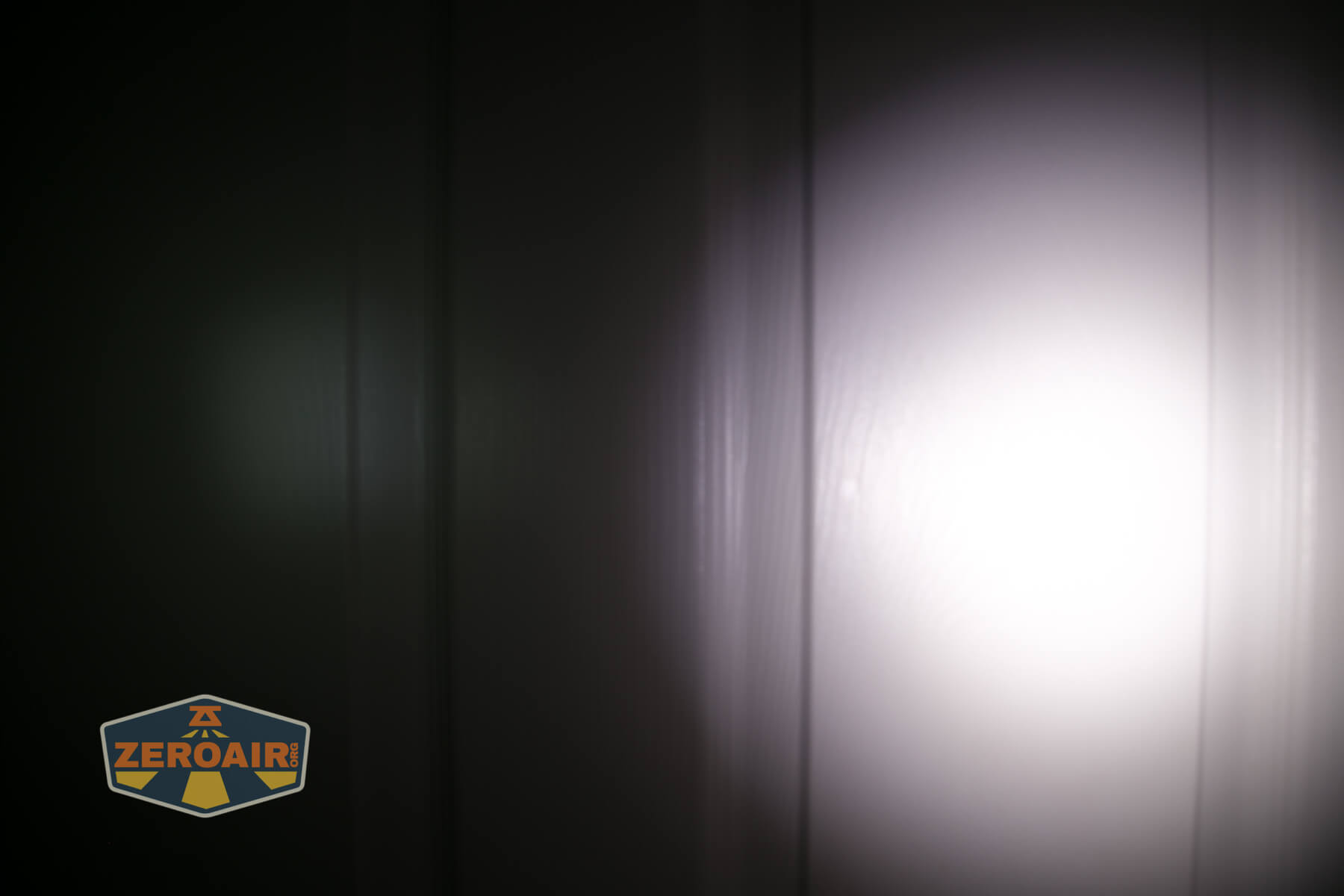 Here’s the test light with the venerable Convoy S2+. Mine’s a custom “baked” edition Nichia 219b triple. A very nice 18650 light.