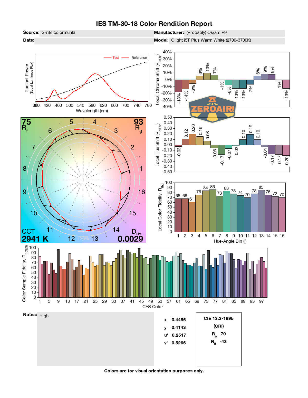 LED Color Report (CRI and CCT)