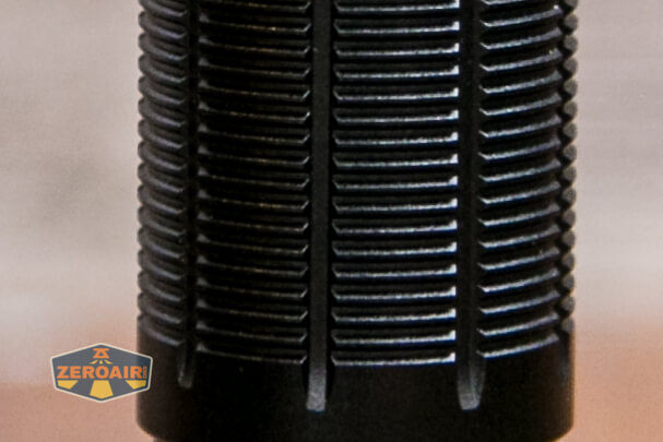 The tailcap gets a nice beefy spring. In fact, it’s a double spring. The threads here are unanodized, but square cut and lubed appropriately. You can see the inner sleeve tube just poking out above the threads there. This doesn’t come out but is what facilitates things like charging from the head end.