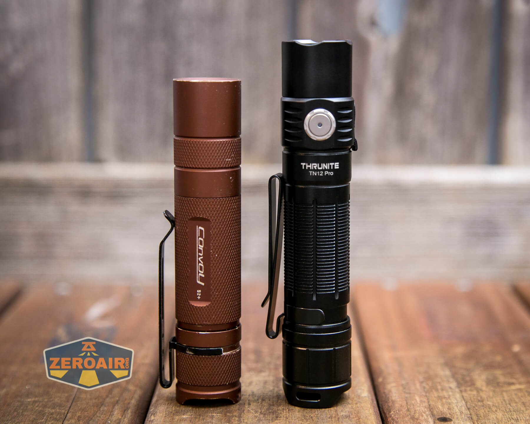 Thrunite TN12 Pro flashlight beside torchlab boss 35