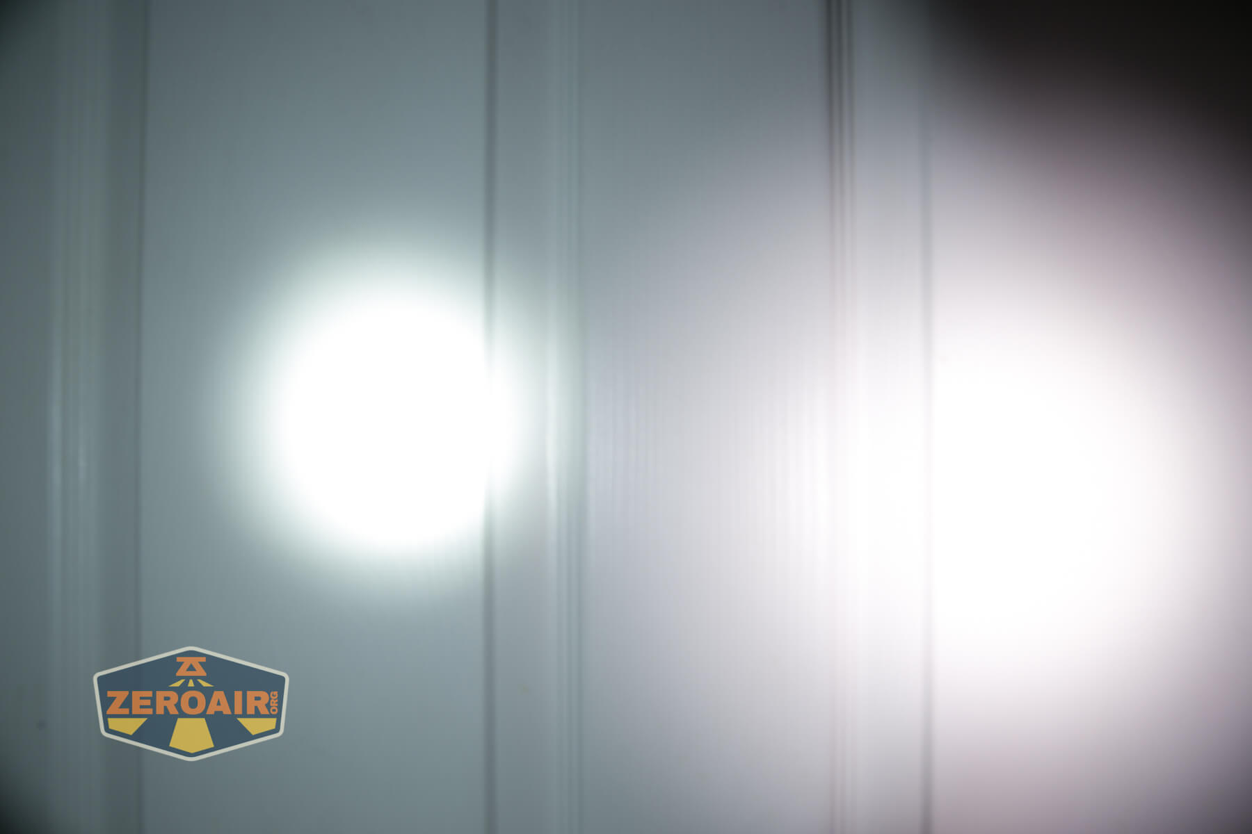 Here’s the test light with the venerable Convoy S2+.  Mine’s a custom “baked” edition Nichia 219b triple.  A very nice 18650 light.