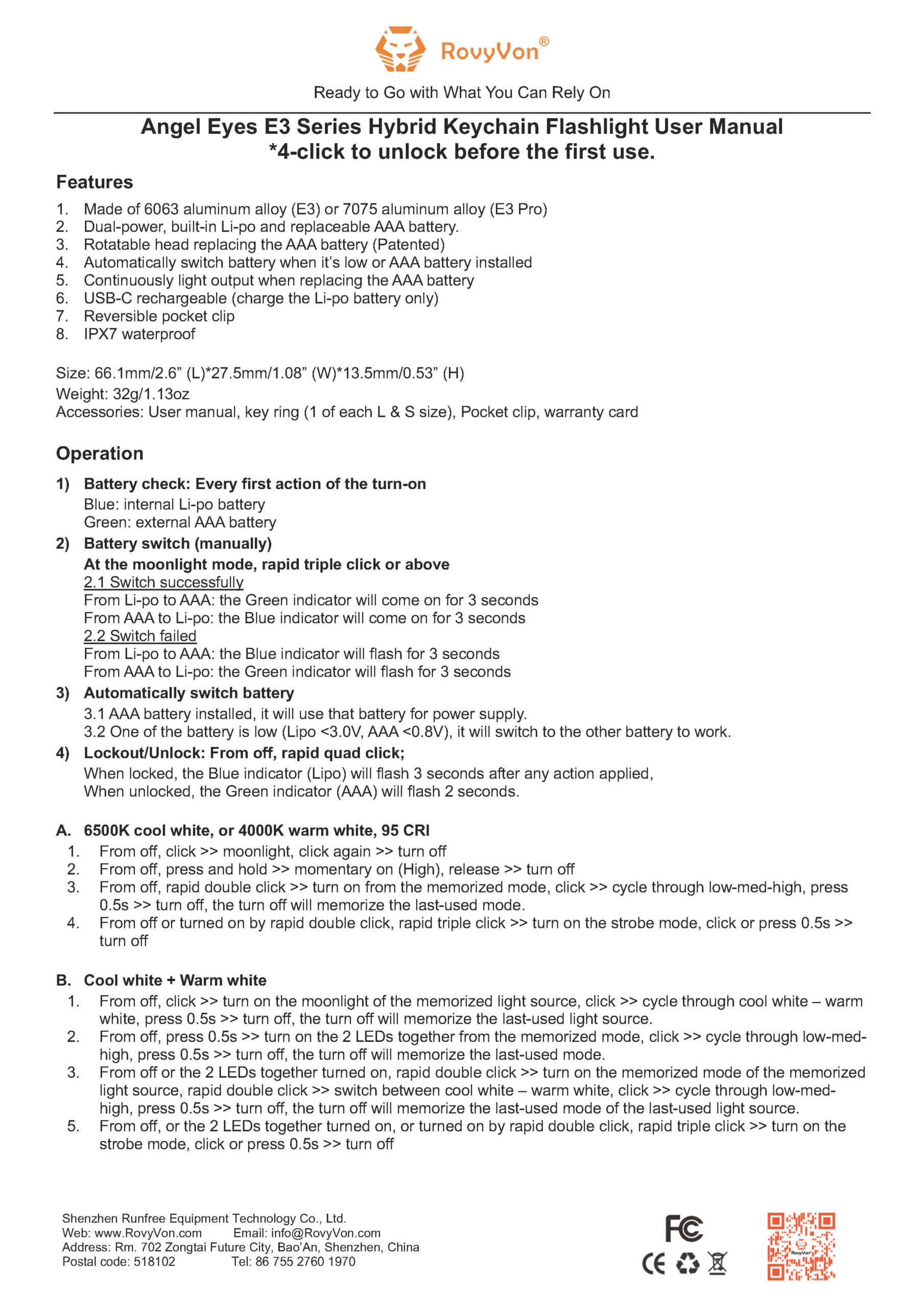RovyVon E3 Pro Keychain flashlight, is available in this Pro version! This little light with a built-in LiPO will run a single AAA cell!