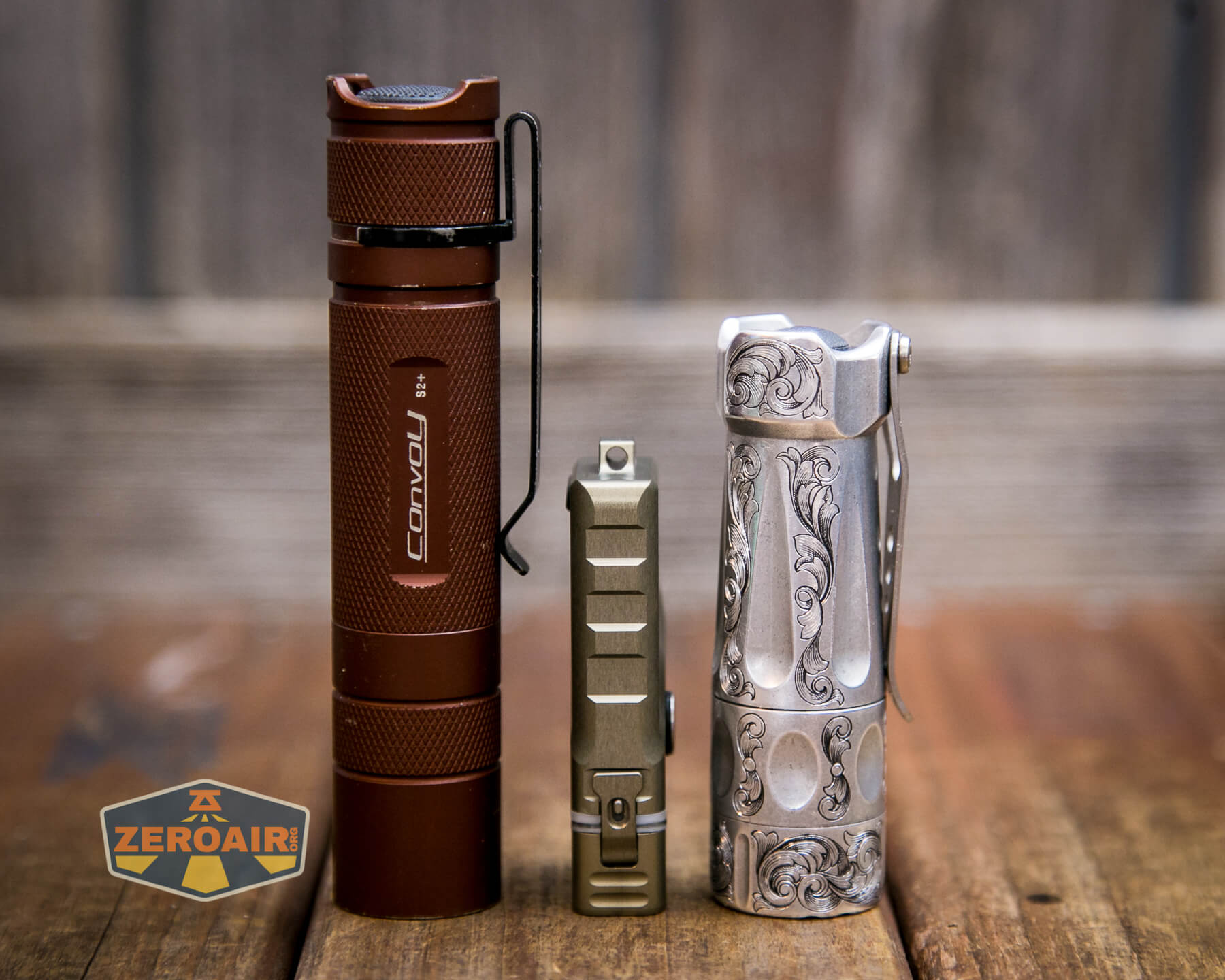 And here’s the light beside my custom-engraved TorchLAB BOSS 35, an 18350 light. I reviewed the aluminum version of that light in both 35 and 70 formats.