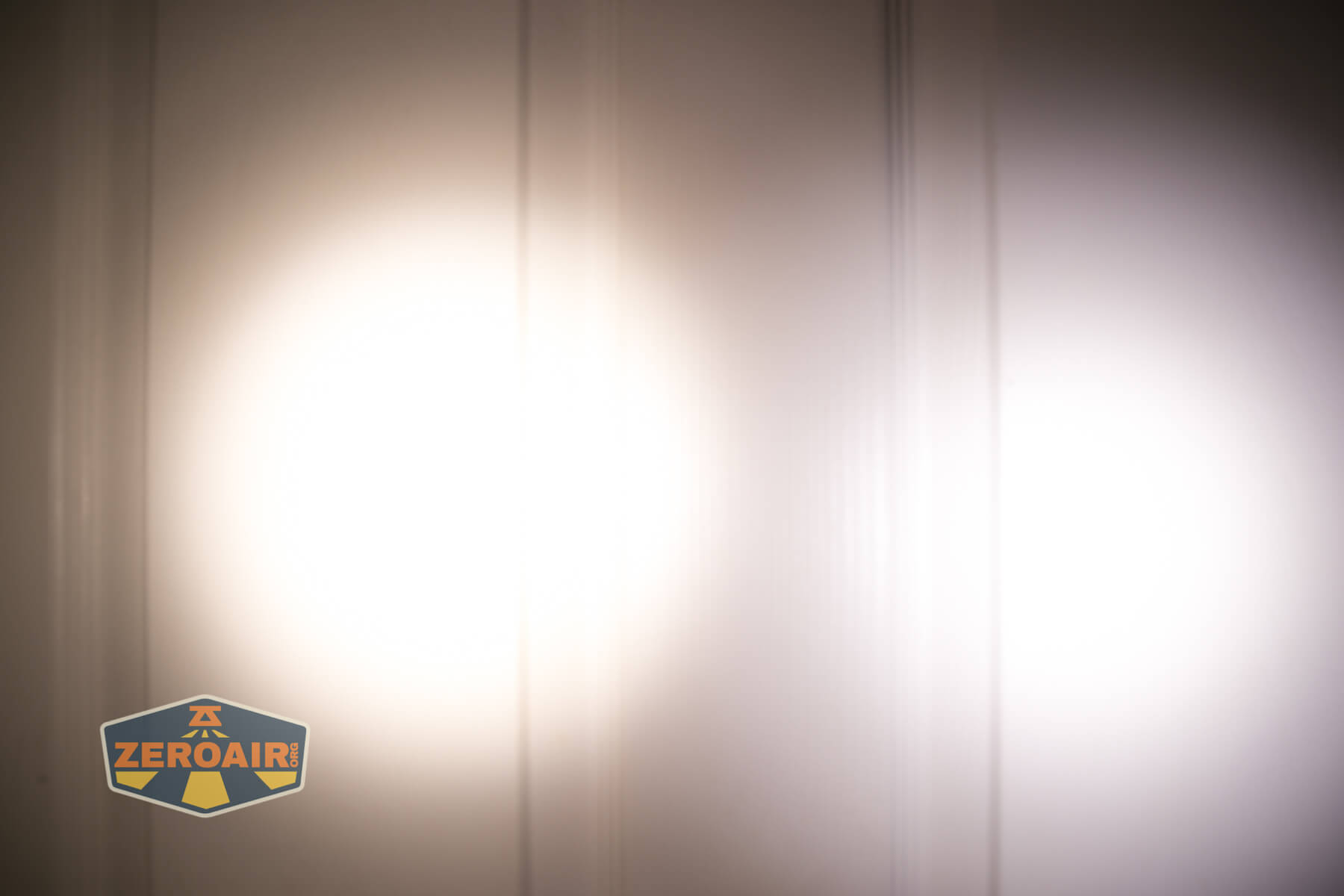 Here’s the test light with the venerable Convoy S2+. Mine is a custom “baked” edition Nichia 219b triple. A very nice 18650 light!