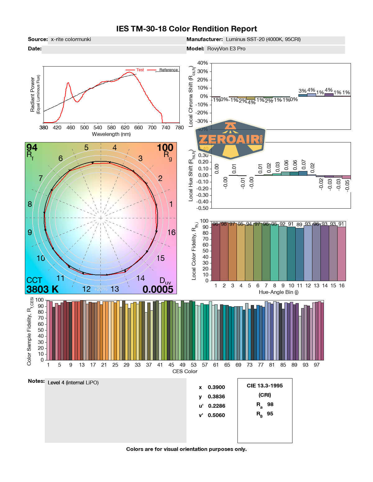 LED Color Report (CRI and CCT)