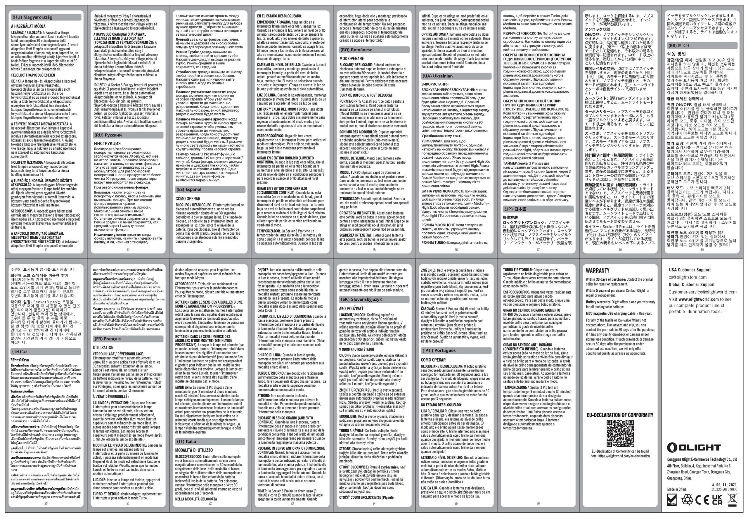 - Olight 5000mAh 21700 cell (customized, proprietary)