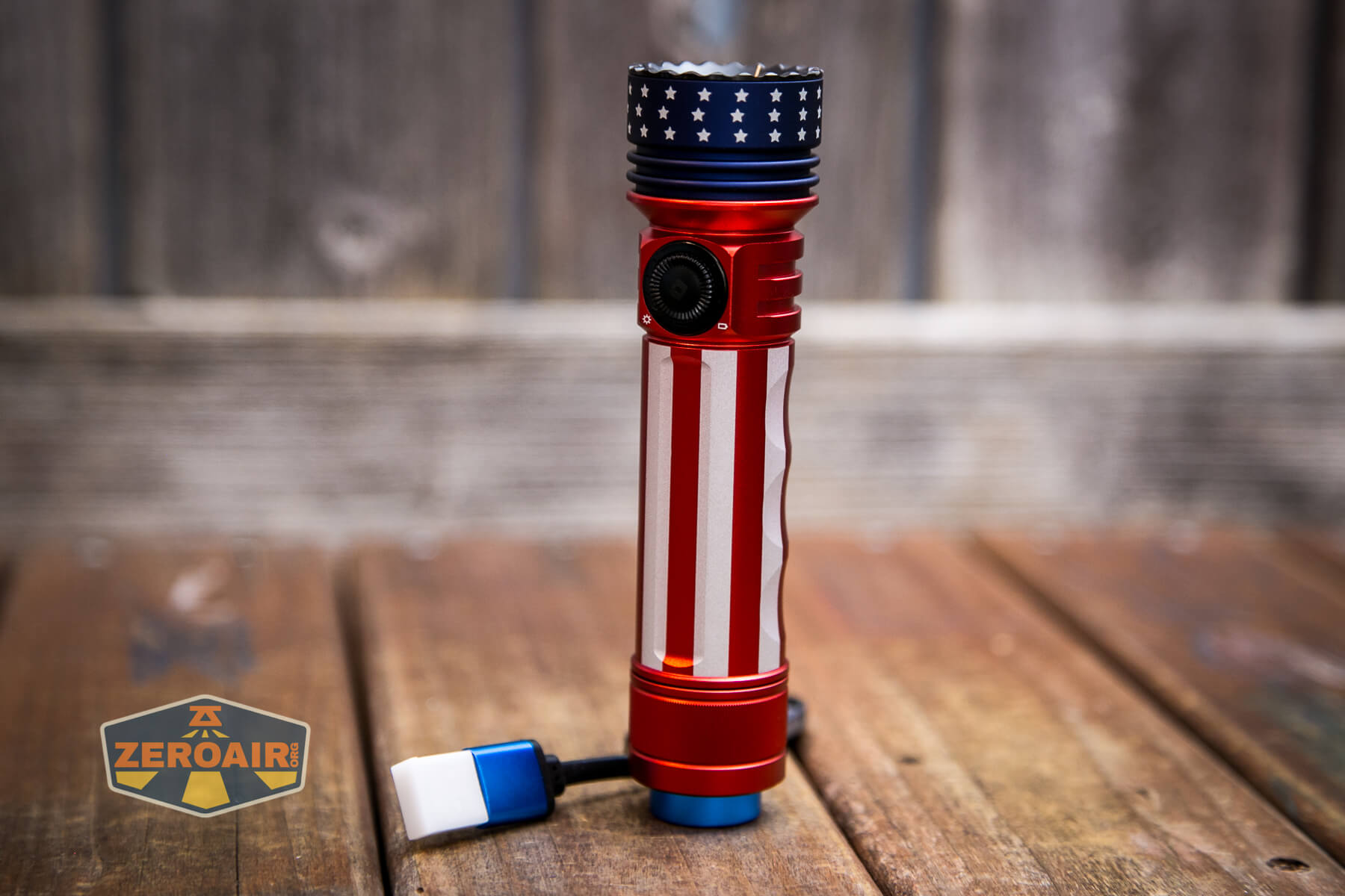 Here’s the Olight Seeker 3 Pro Stars and Stripes flashlight. Still 4200 lumens and some great features like a rotary dial! Read on!