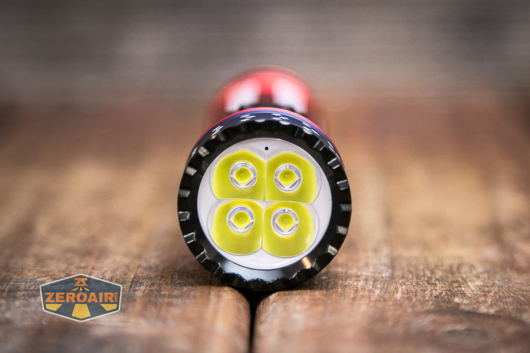 Olight doesn’t make an emitter claim here, but upon inspection, they appear to be Osram P9. That fits well with Olight, so it seems like a safe call. There are four emitters here.