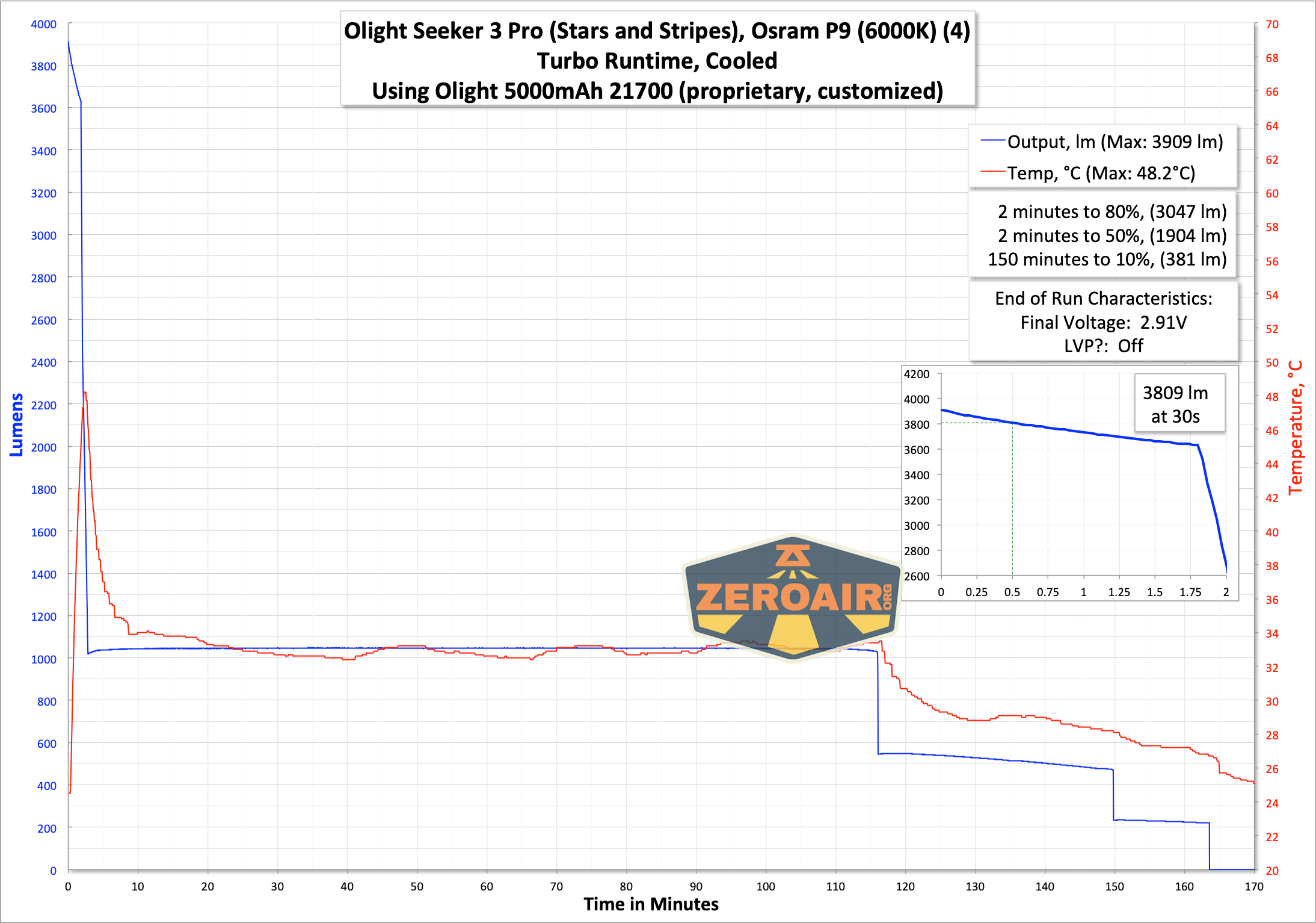 | Measured Lumens (at 30s) | 3809 (90.7% of claim)^ |