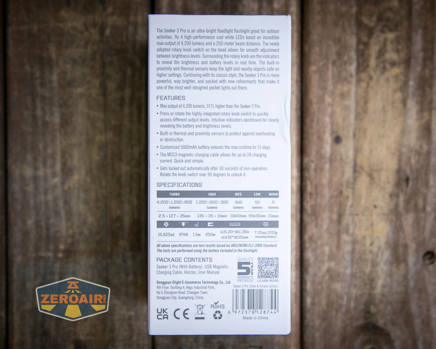 The Olight Seeker 3 Pro is a solid, well-built flashlight. Like the other versions I’ve had of this same light, this is a very nice flashlight. It just feels right in the hand.