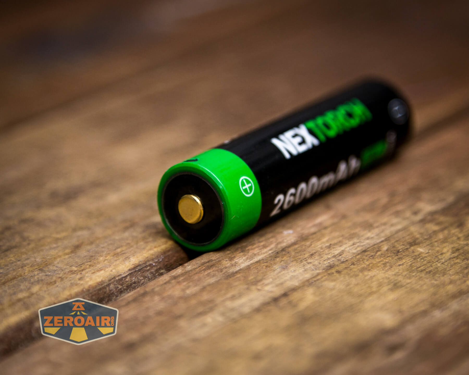 Nextorch includes a cell with the TA30 Tactical flashlight. The cell is a standard button top 18650, with a capacity of 2600mAh.