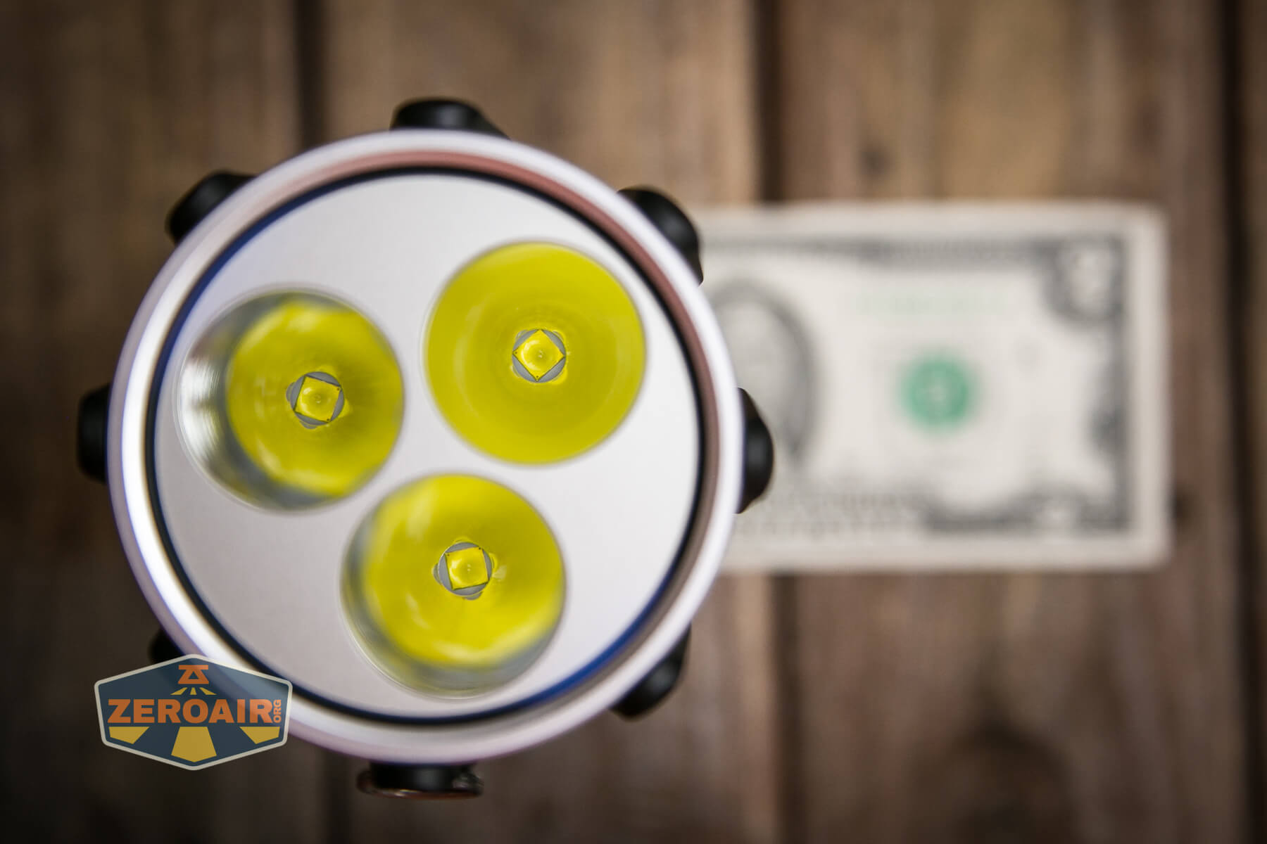 In the Nextorch Saint Torch 30 flashlight are three Cree XHP50.2 emitters. I don’t see that Nextorch makes a claim on the CCT and CRI of these, but we can check on that later. This is a ‘triple’ but not a traditional triple – each emitter has its own reflector.