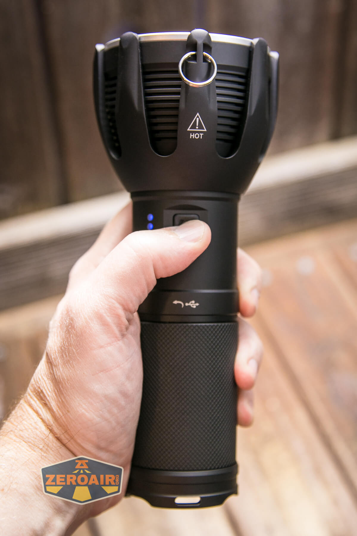 Nextorch also provides a wall wart, but it’s not suitable for use in the USA – it’s the wrong kind of plug. However, any QC3.0 USB port should provide satisfactory power, and those aren’t difficult to come by. (Alternately, any regular USB port should work, but it’ll be slow.)