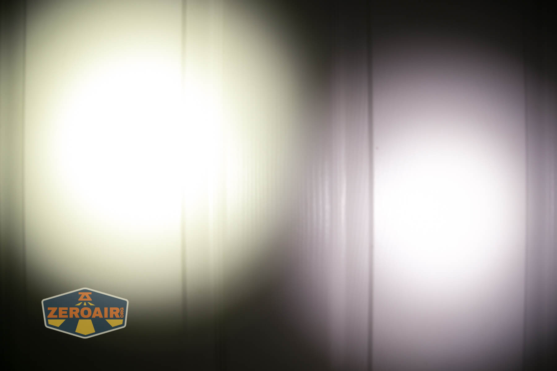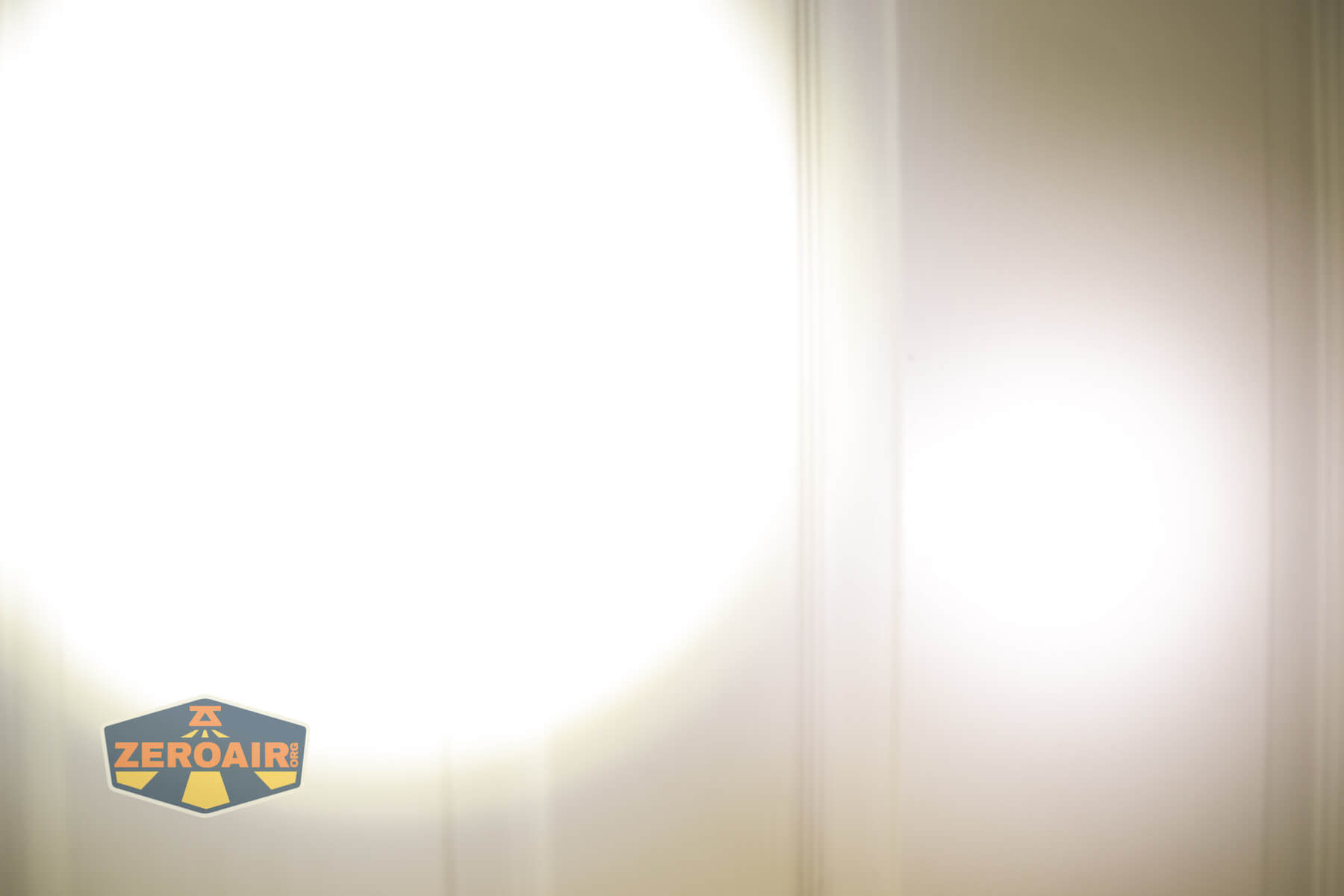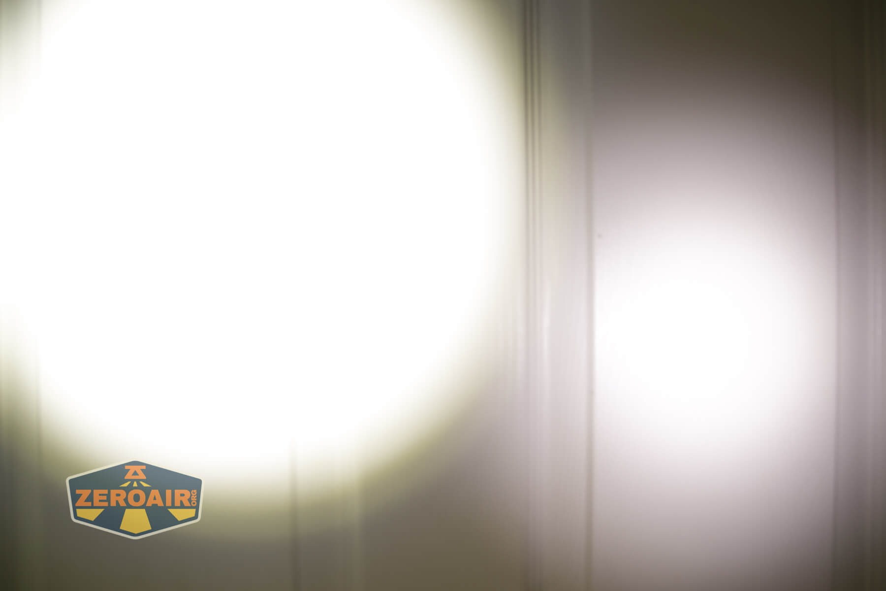 Again, the light starts on Turbo and the mode order decreases in output from there. So that’s the mode order you’ll see in all the photos below. On Turbo (left most below), the output does get up into the cooler CCT. The lower modes are quite reasonable though, in the upper 5000K’s. CRI isn’t great, in the mid to upper 70 range. All in all this isn’t too bad, particularly for a light with such high output levels.