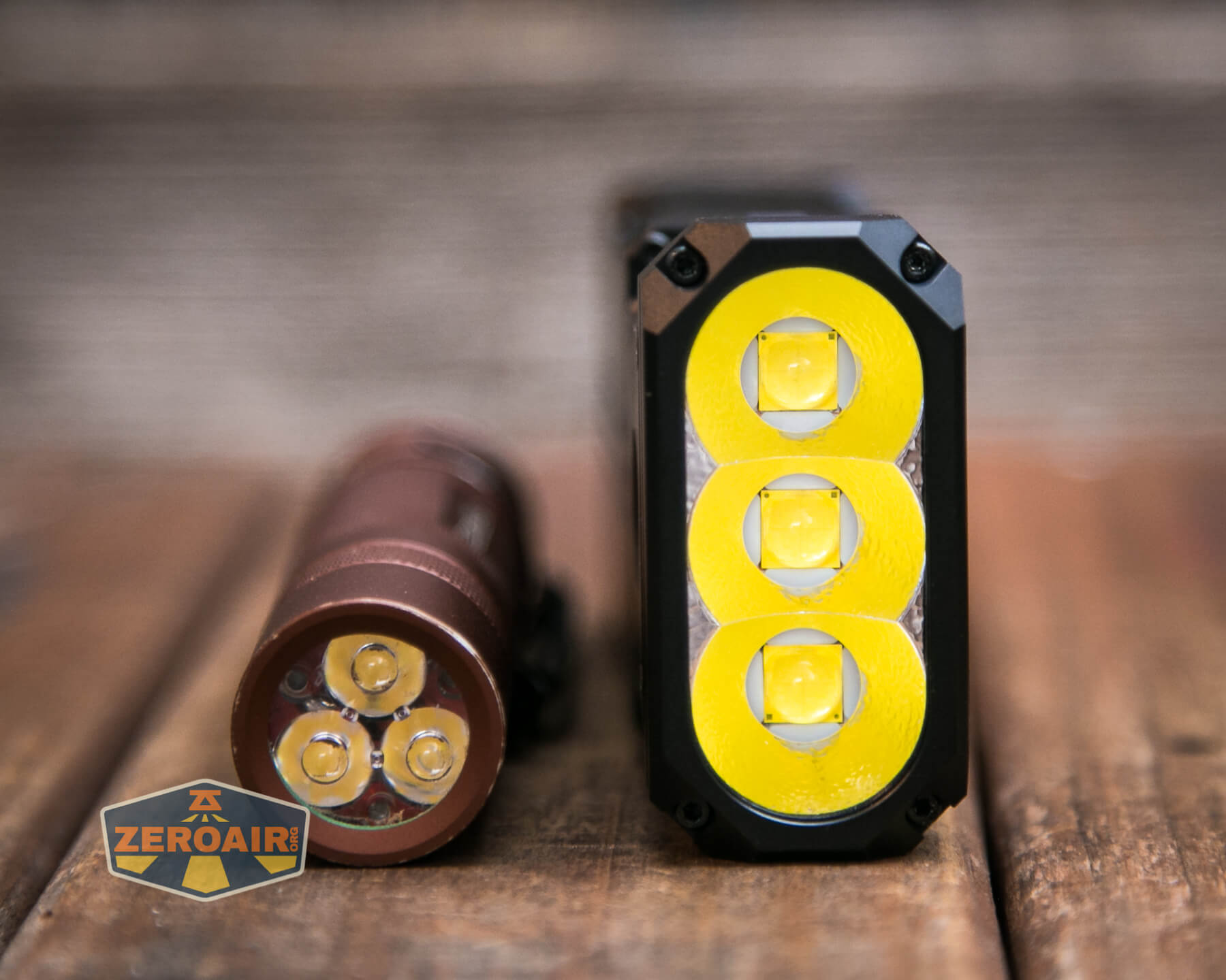Wuben uses three Cree XHP70.2 emitters in the X-1 Falcon flashlight. That’s a good choice for high output, of course.