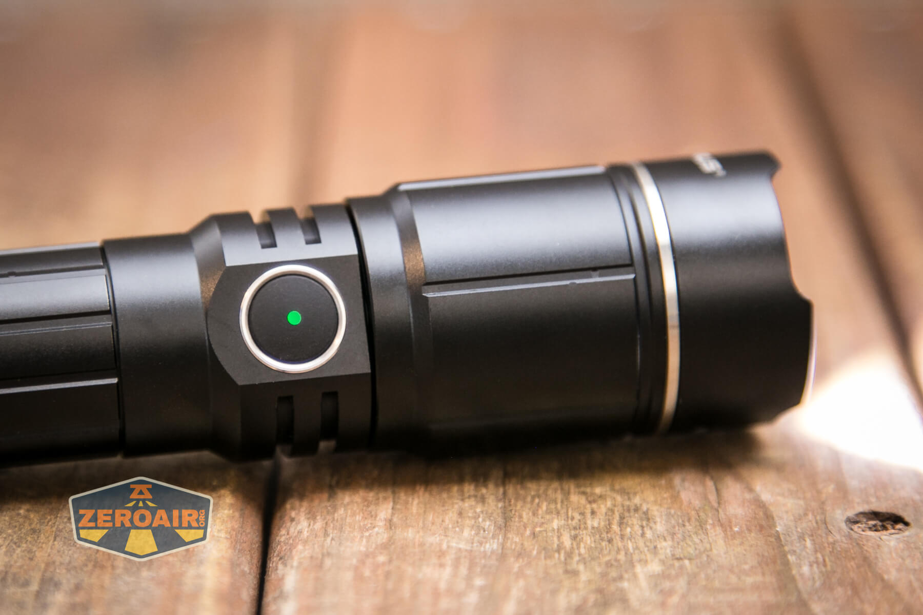Klarus uses a single indicating e-switch on the A2 Pro Zoomable flashlight.