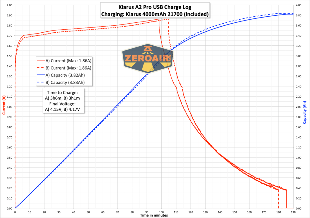 The highest claimed output is with a 21700 cell, and so I tested with just the included cell.
