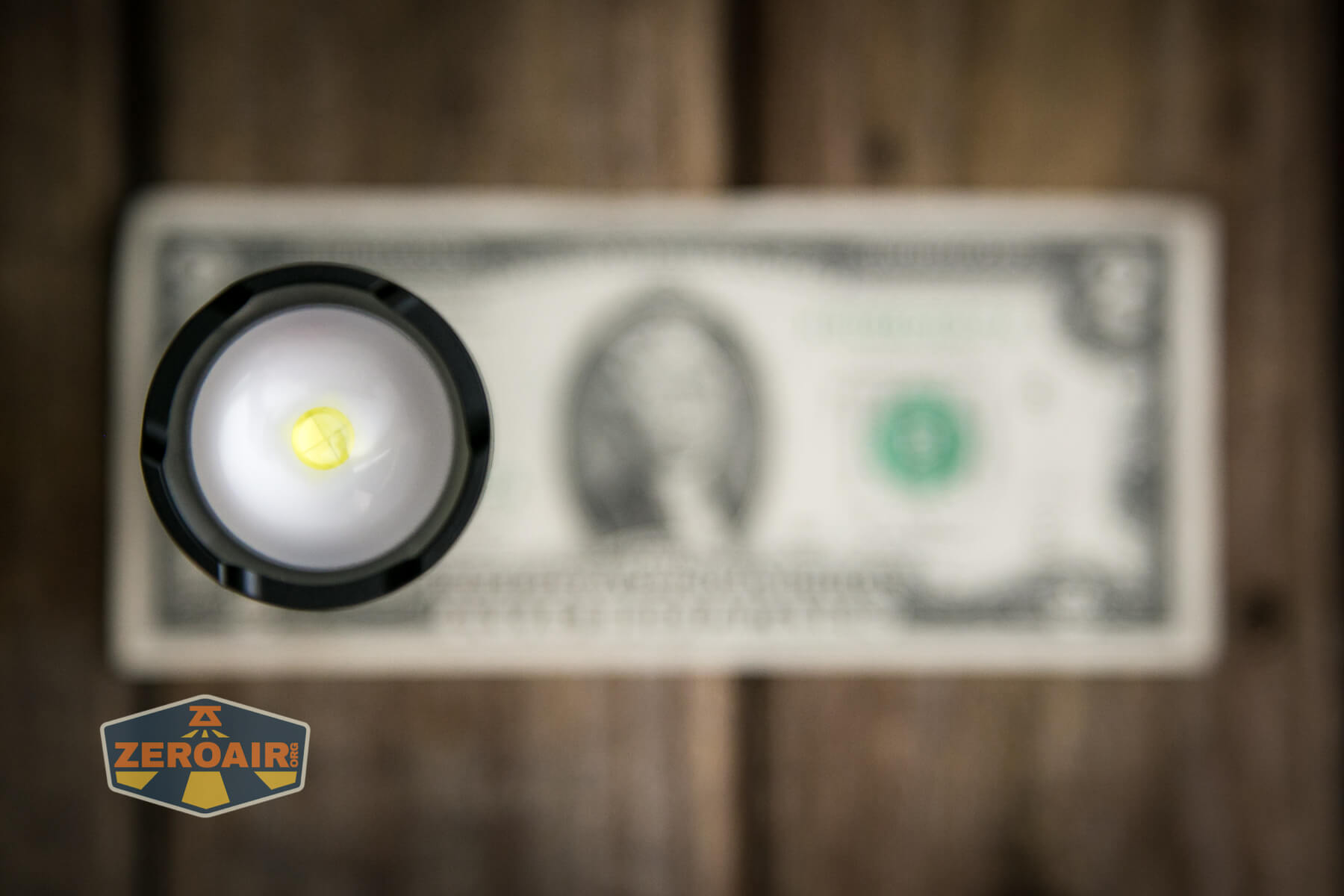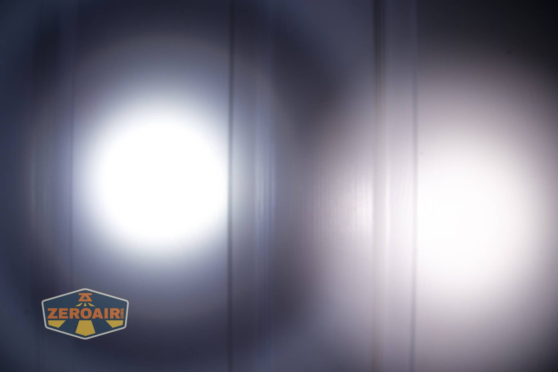 Here’s the test light with the venerable Convoy S2+. Mine’s a custom “baked” edition Nichia 219b triple. A very nice 18650 light.
