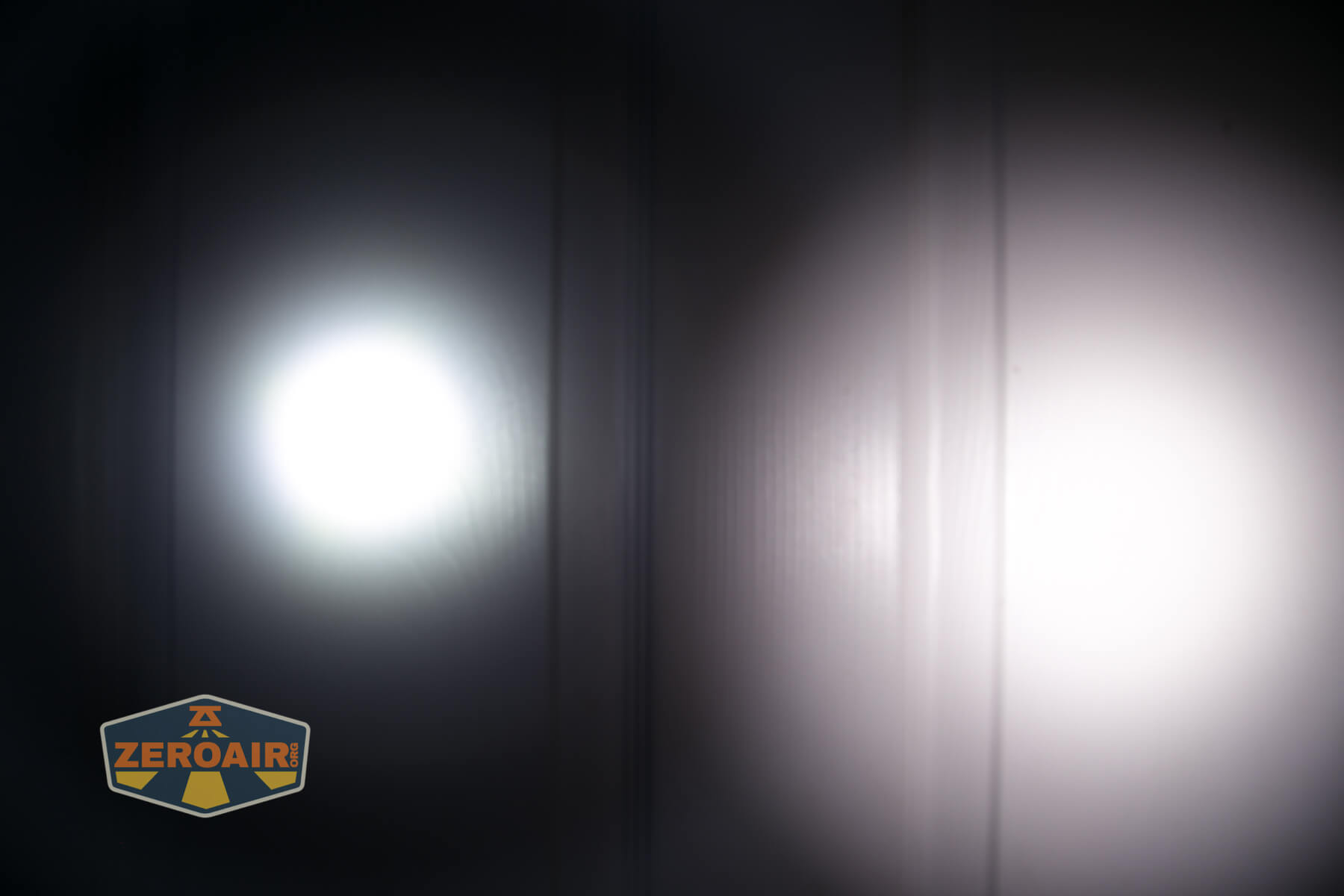 Below you can see flood (first) then throw. This is a zoomable light, and you can move fluidly between flood and throw while the light is on. Zooming the light is mechanical and not related to the electronic operation of the light.