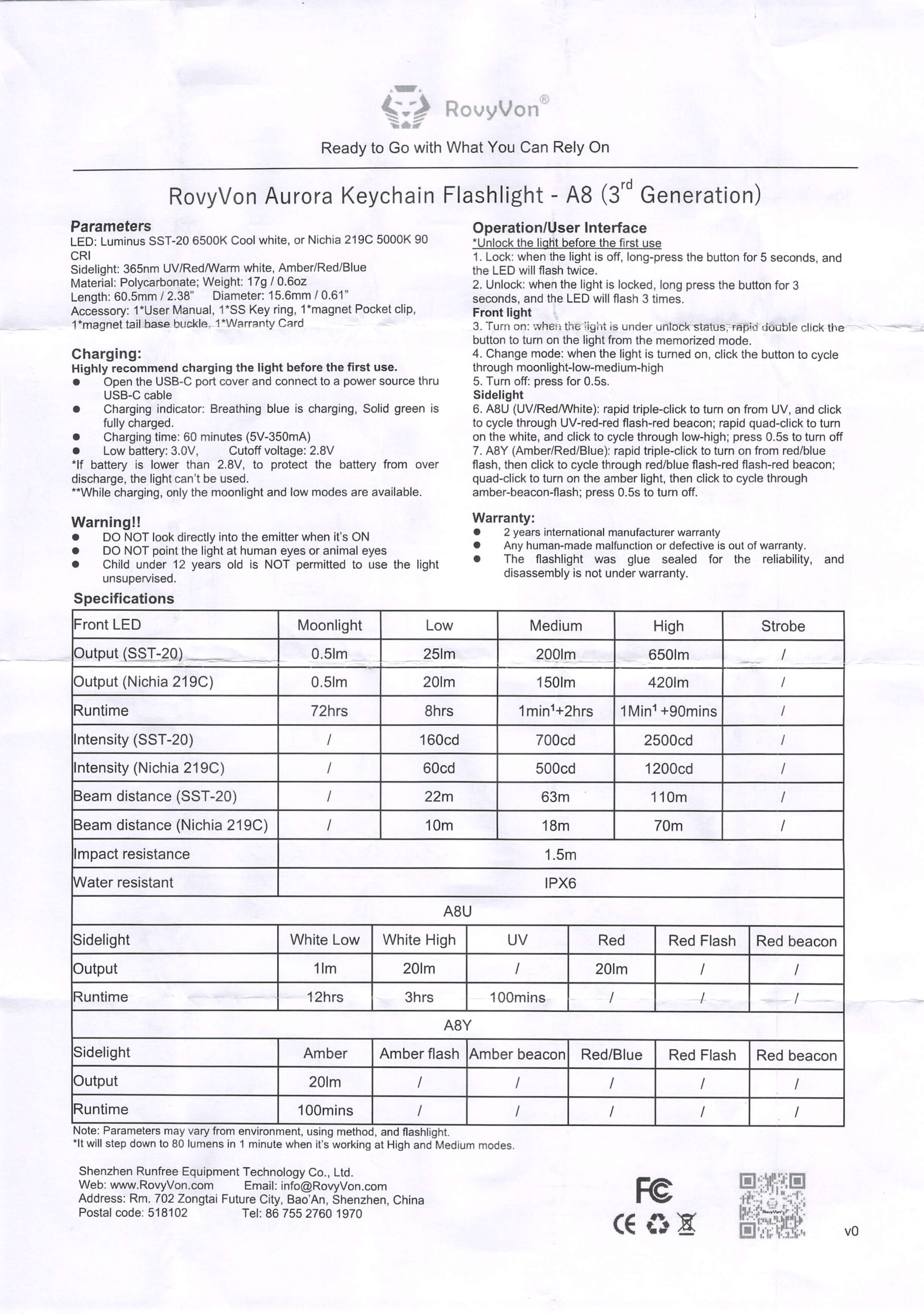 Here’s a link to the RovyVon Aurora A8 keychain flashlight product page.