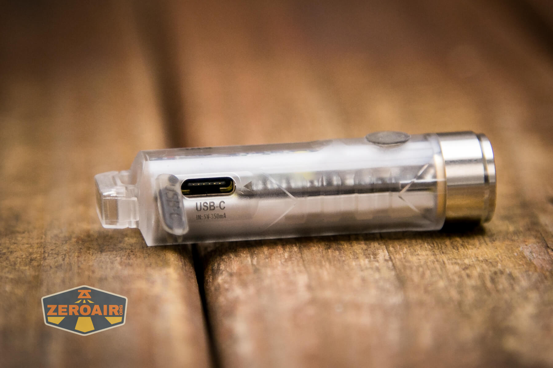 The RovyVon Aurora A8 keychain flashlight is charged via USB-C, which has a push-in rubber cover. This cover stays attached. The plug is a little harder to manipulate than most I’ve used, but it works just fine.