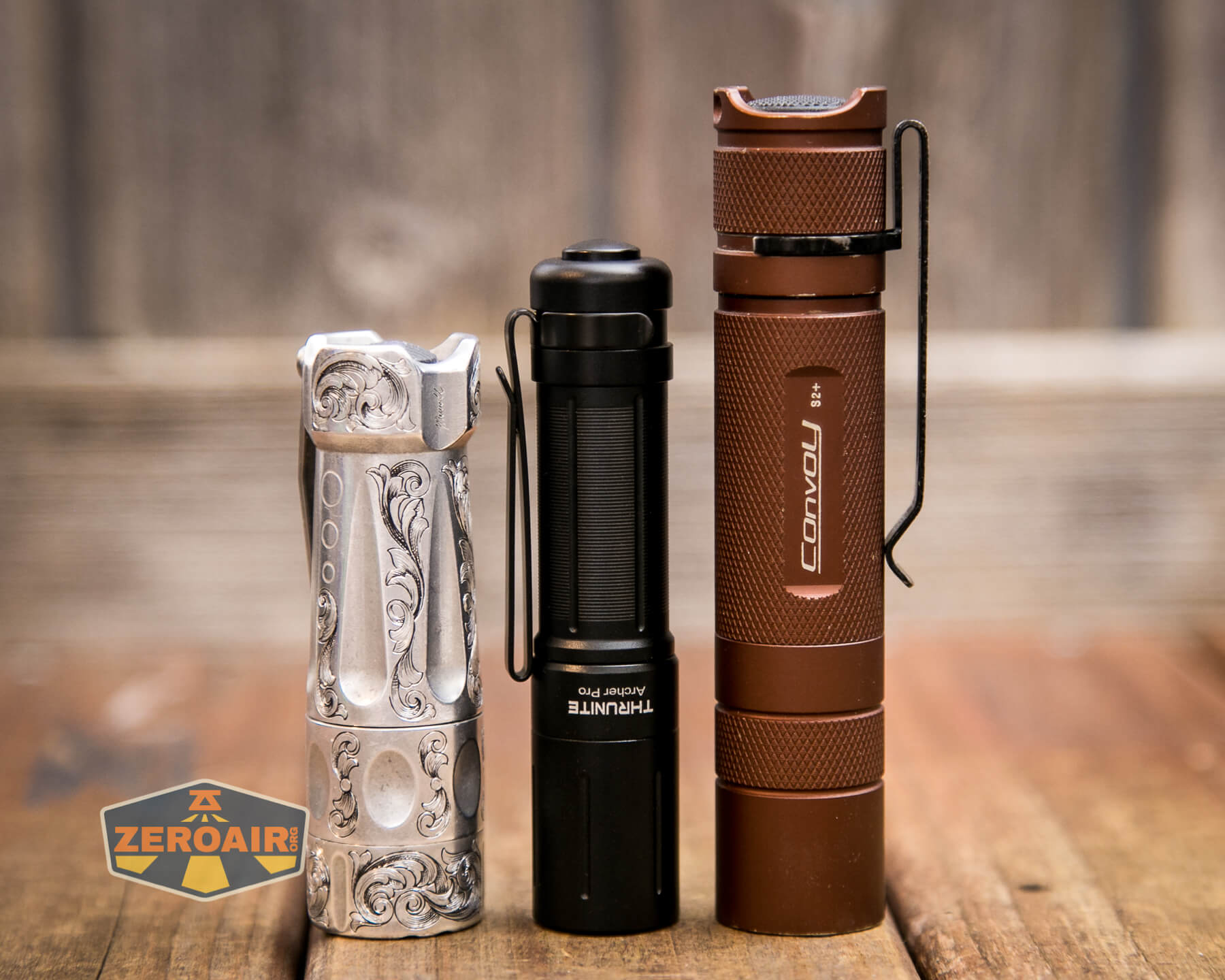 You can see that the Thrunite Archer Pro flashlight and Archer Mini have very similar designs, but are still a bit different. Specifically, the Pro has ribs in the middle section.