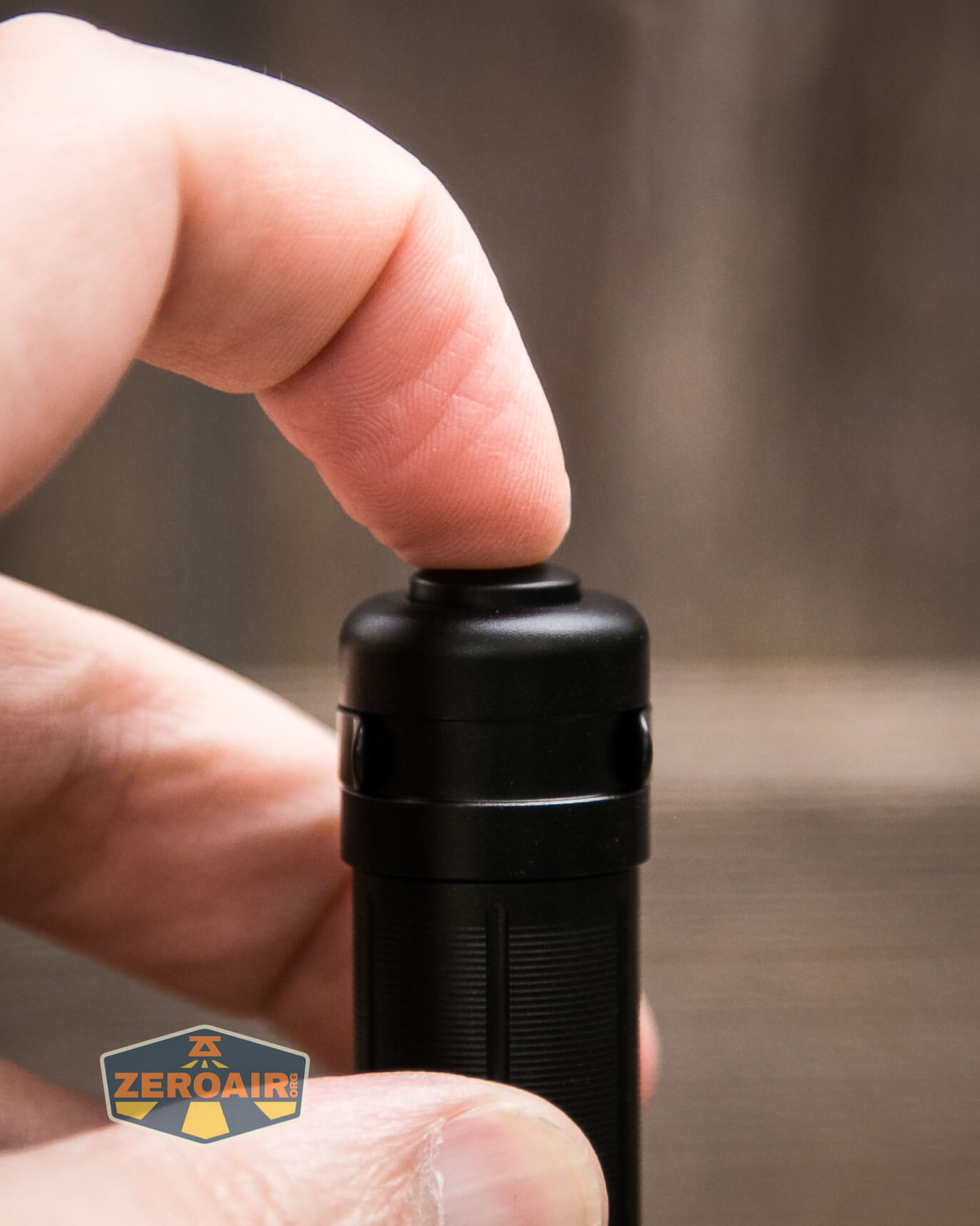 A single switch is used on the Thrunite Archer Pro flashlight. It’s a tail switch and has a rounded cover.