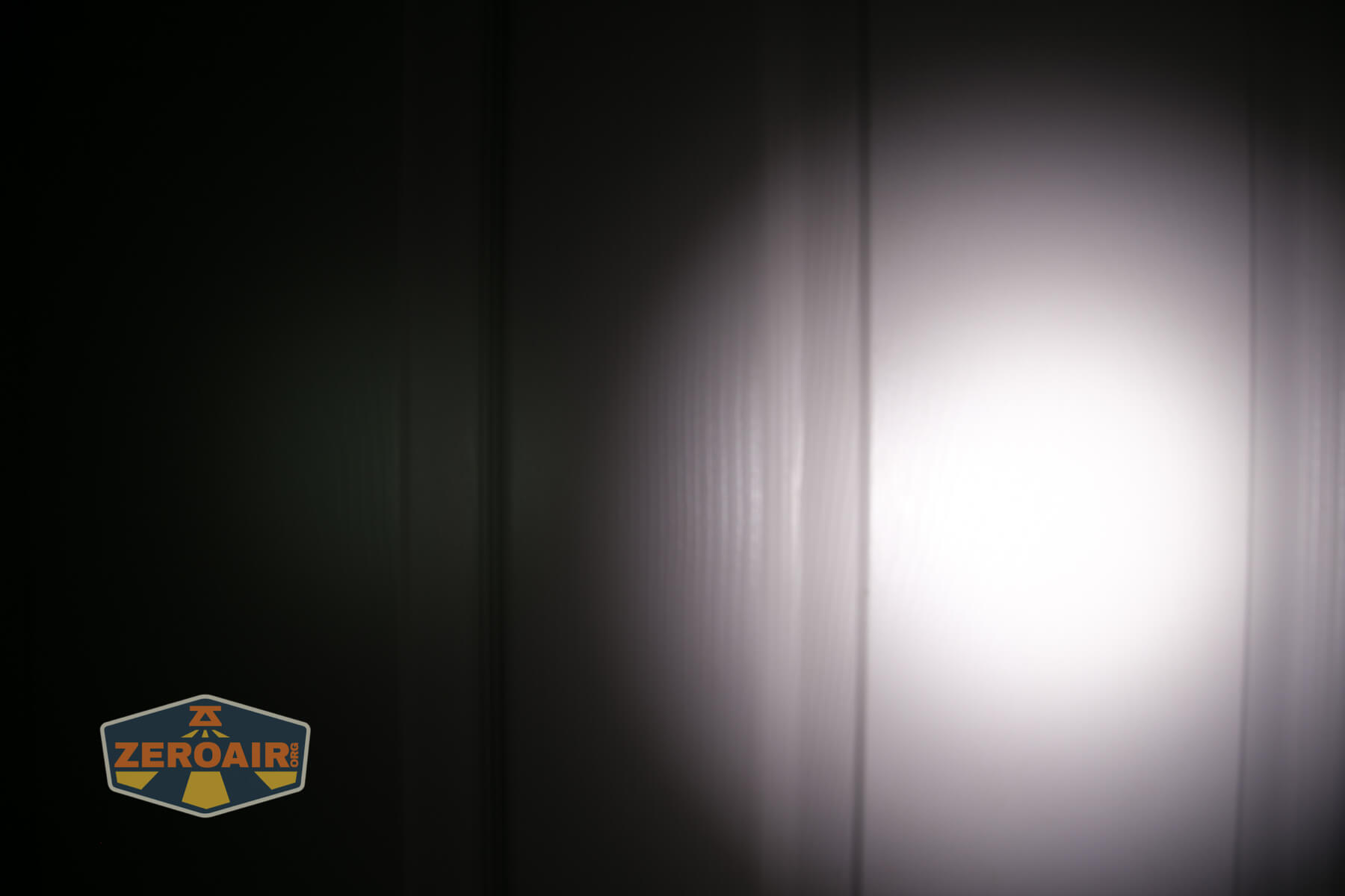 Here’s the test light with the venerable Convoy S2+. Mine is a custom “baked” edition Nichia 219b triple. A very nice 18650 light! Also in the photos is my custom-engraved TorchLAB BOSS 35, an 18350 light. I reviewed the aluminum version of that light in both 35 and 70 formats.