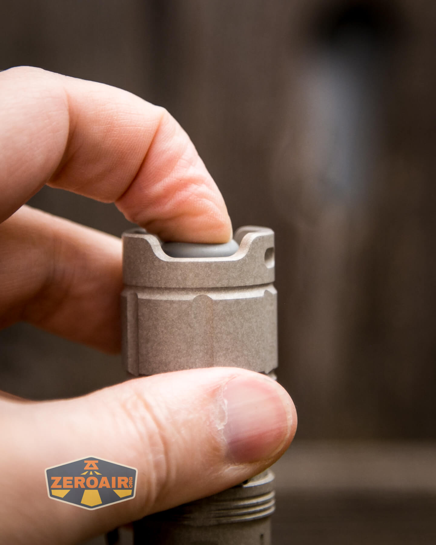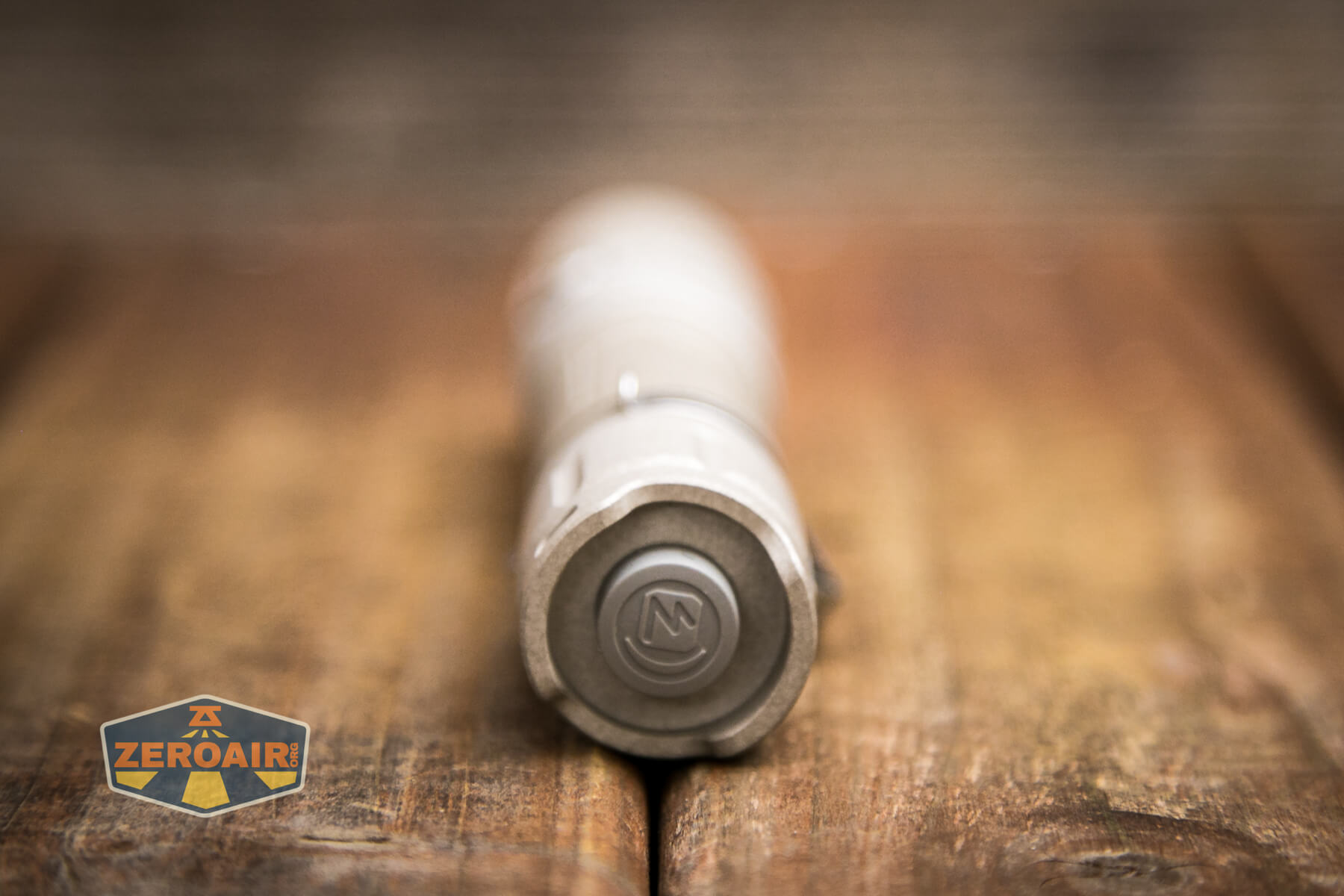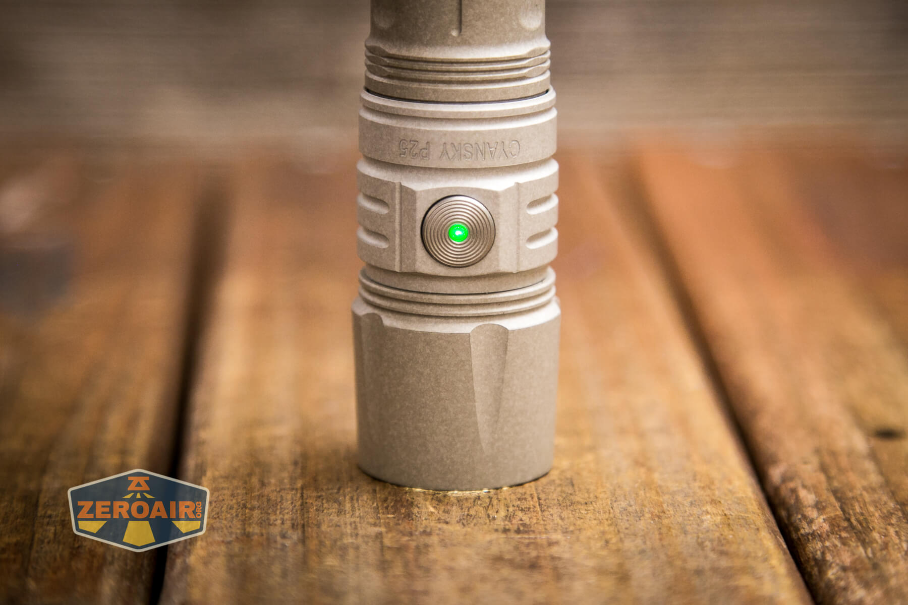 Two switches are used for control of the Cyansky P25 V2 flashlight. First is the mechanical tail clicky. It’s a forward clicky, which allows momentary actuation. This switch also serves as a mechanical lockout to prevent any parasitic drain on the cell.