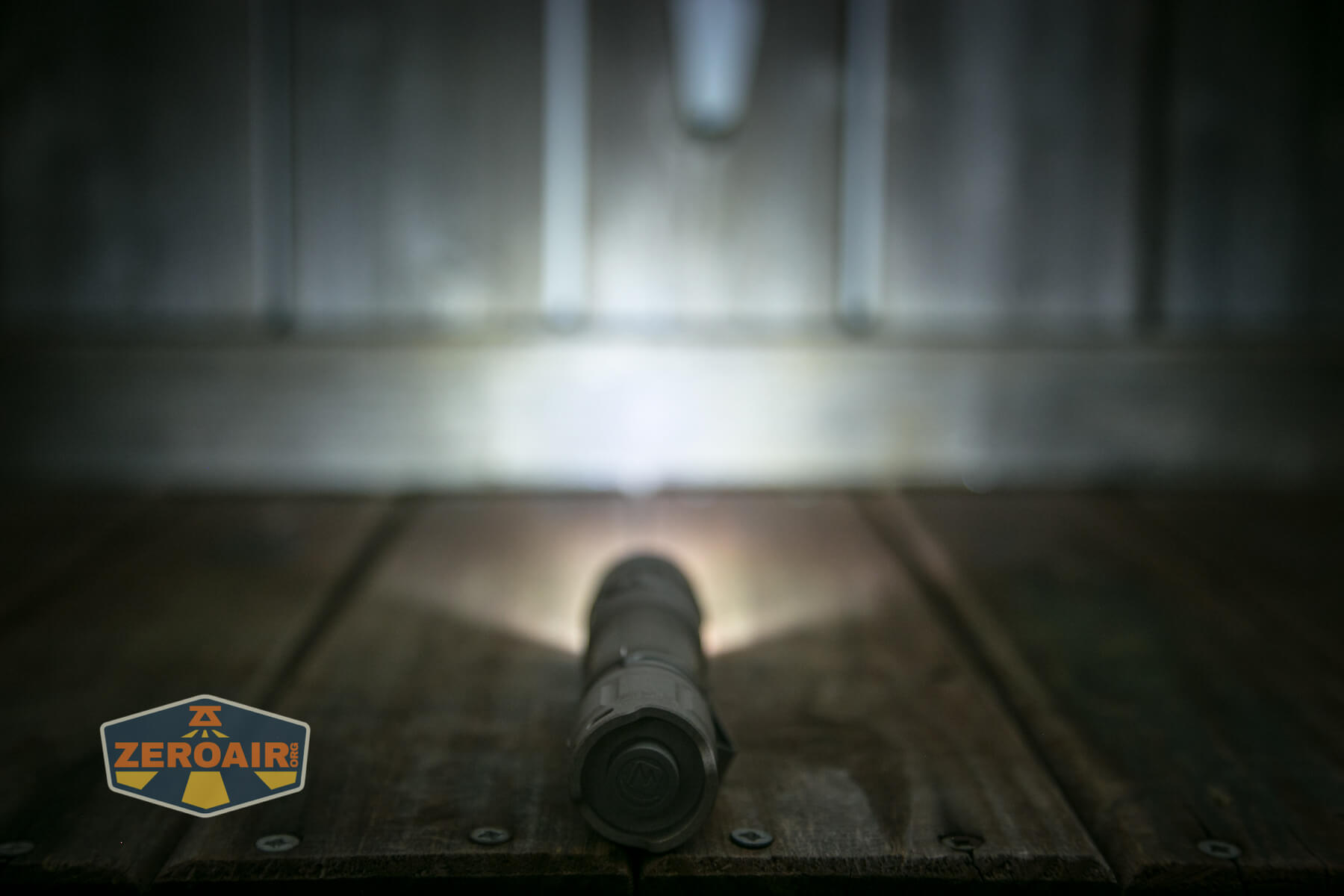 Here’s the test light with the venerable Convoy S2+. Mine is a custom “baked” edition Nichia 219b triple. A very nice 18650 light!