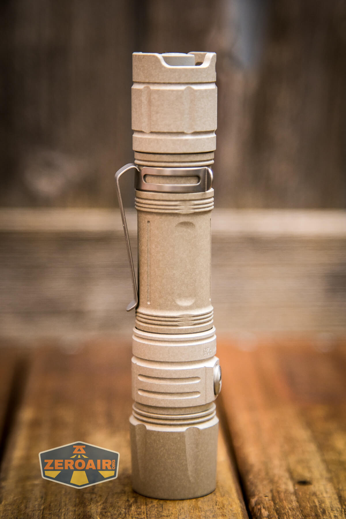 Also seen is the light beside my custom-engraved TorchLAB BOSS 35, an 18350 light. I reviewed the aluminum version of that light in both 35 and 70 formats.
