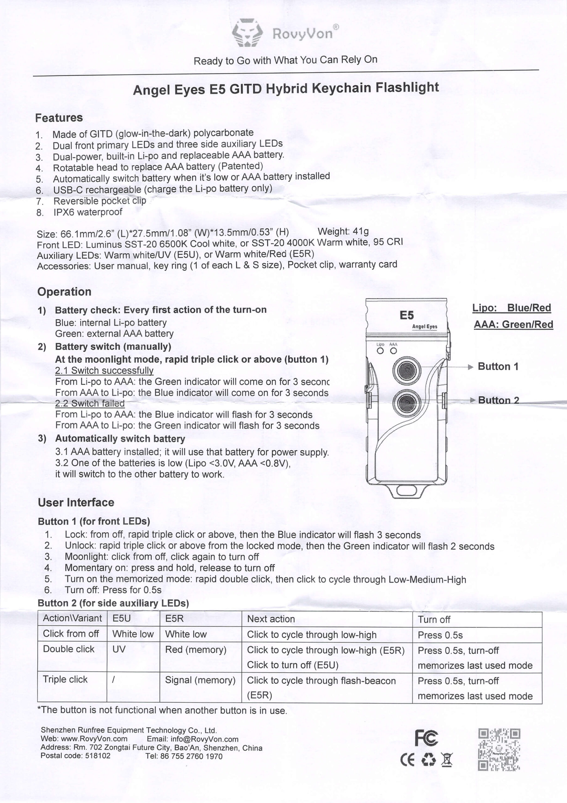 Here’s a link to the RovyVon Angel Eyes E5 flashlight product page.