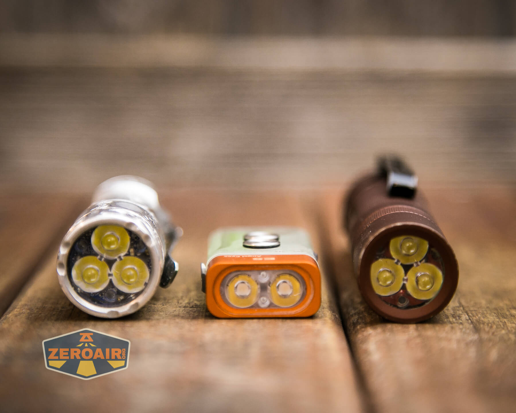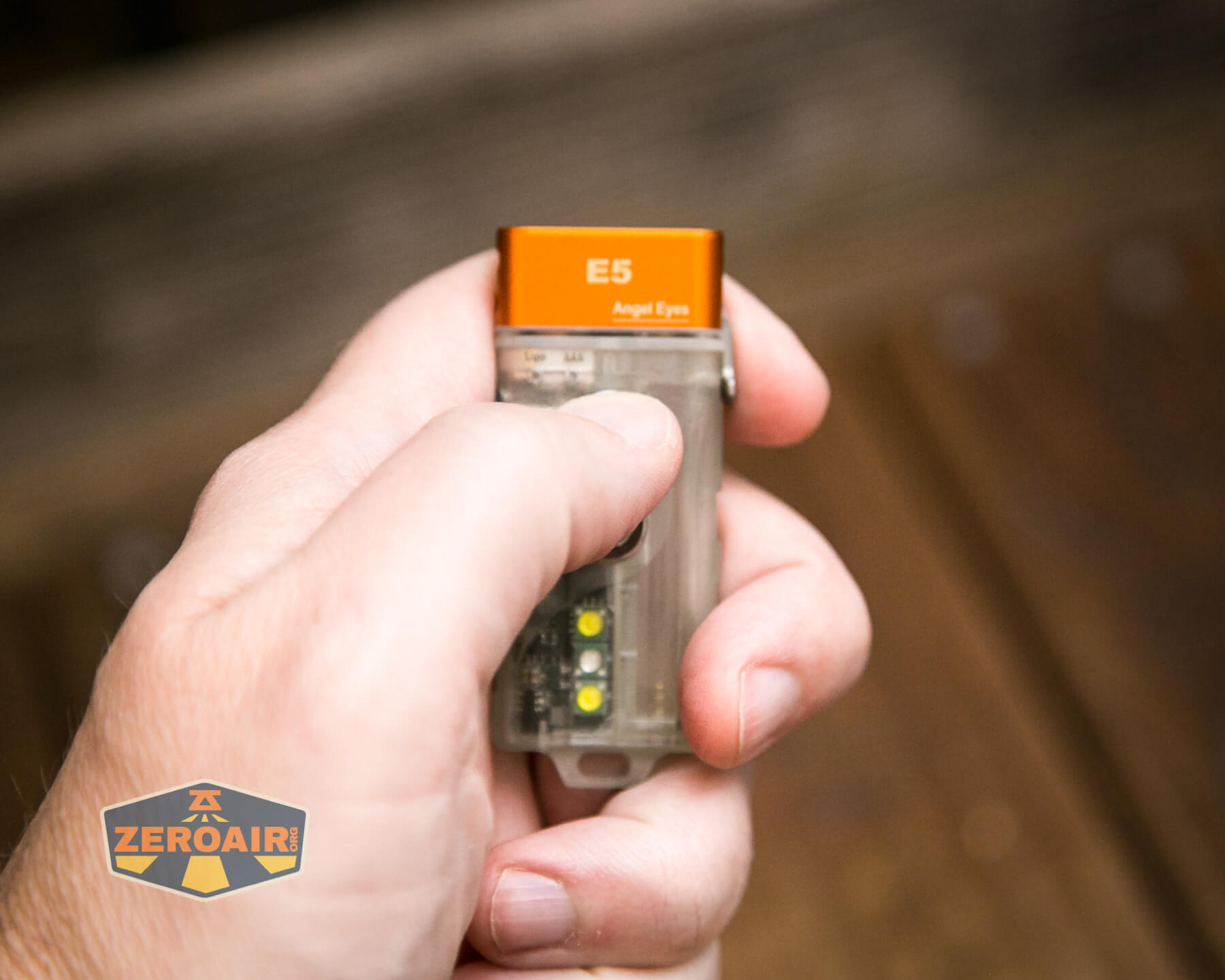 There are some interesting points to make about the power source. The different power sources have different output levels. If the E5 has only the LiPO, then the output for the highest 3 modes is higher. If there’s an AAA cell installed, you get the lower modes.