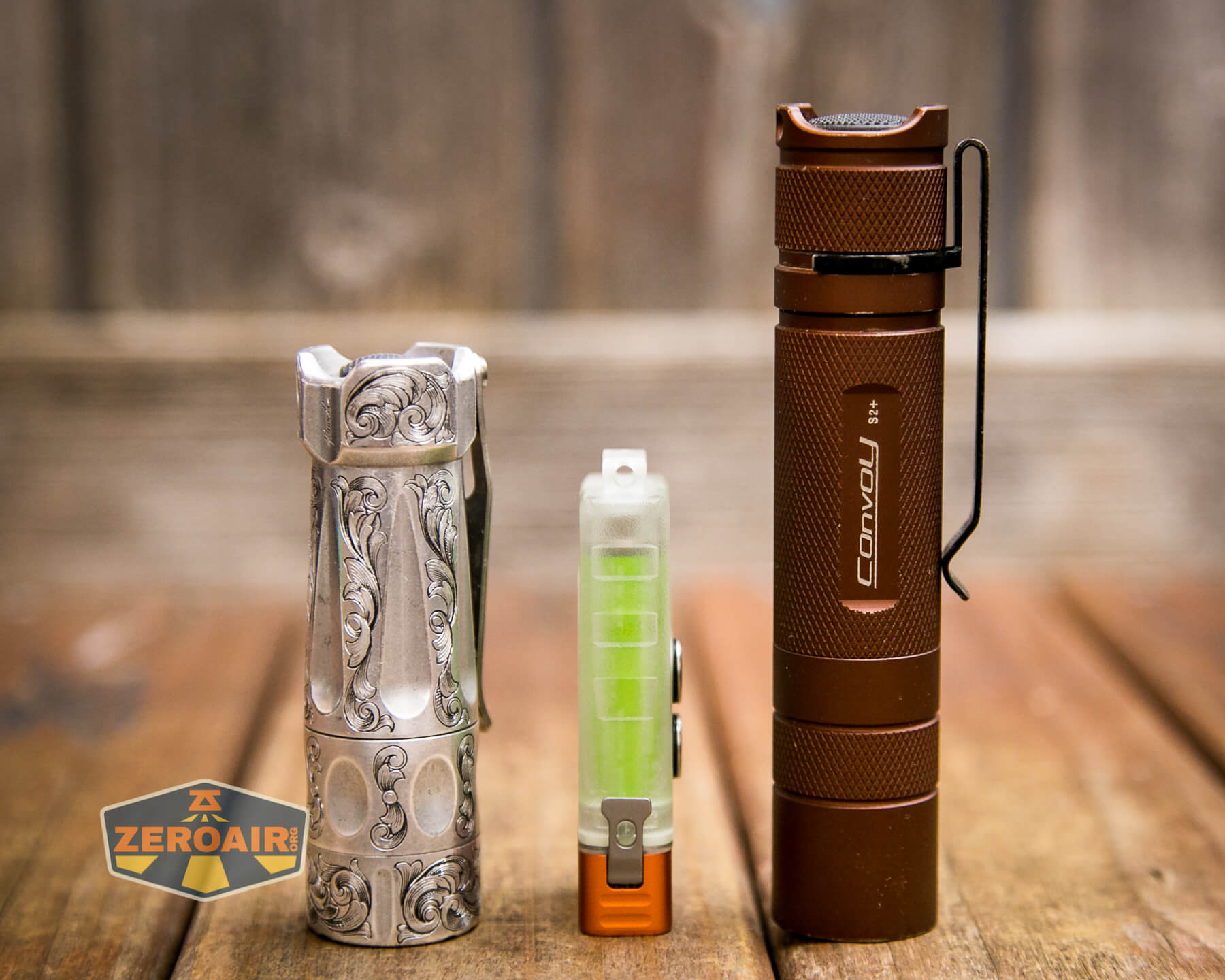 Also seen above is the light beside my custom-engraved TorchLAB BOSS 35, an 18350 light. I reviewed the aluminum version of that light in both 35 and 70 formats.
