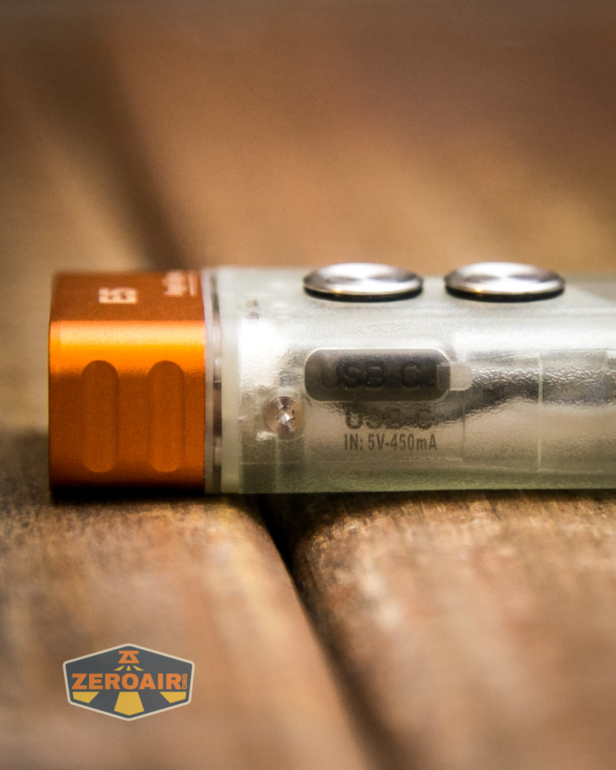 There are two power sources for the RovyVon Angel Eyes E5 flashlight. First is an internal LiPo battery. As with many RovyVon flashlights, this battery is not user-serviceable.