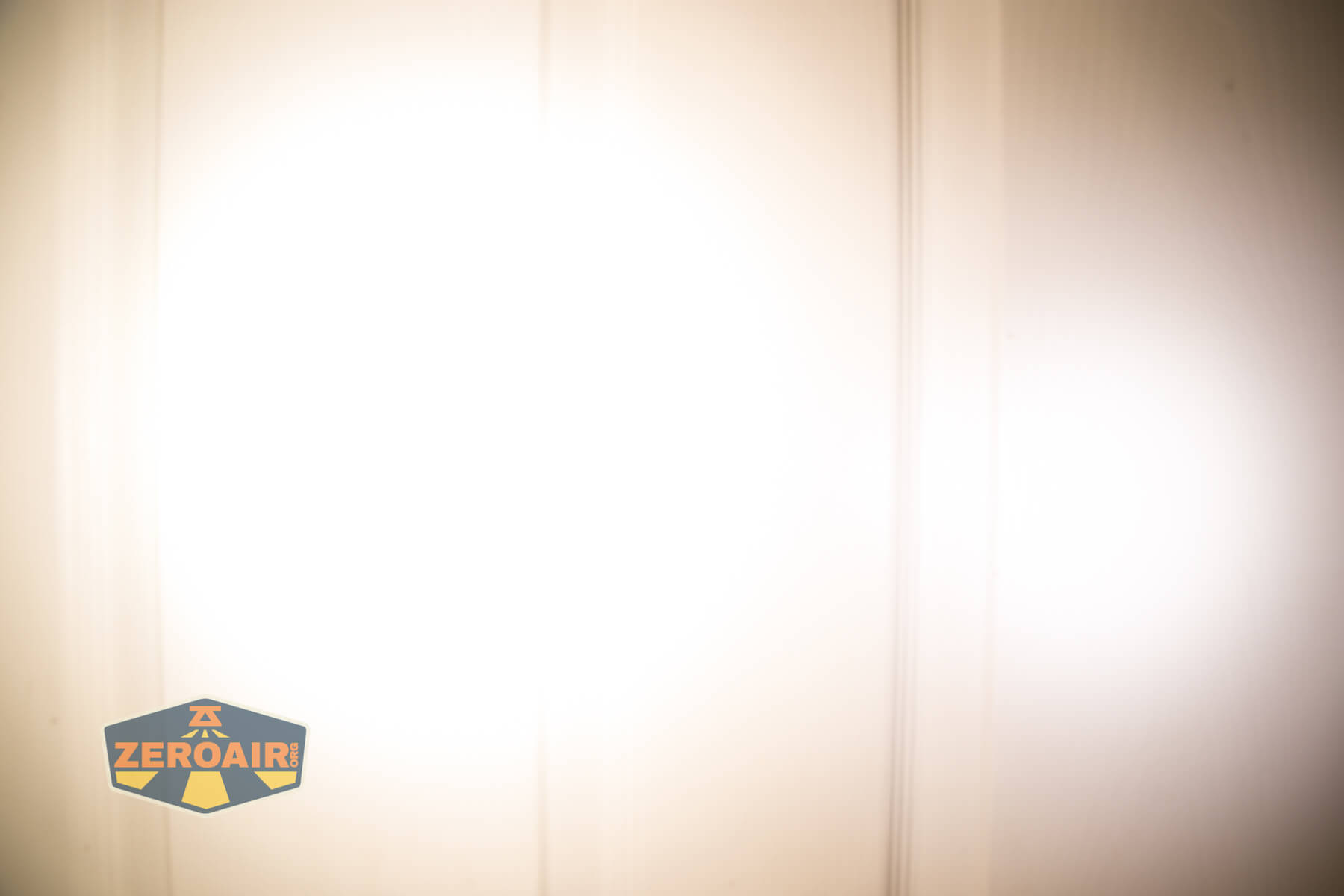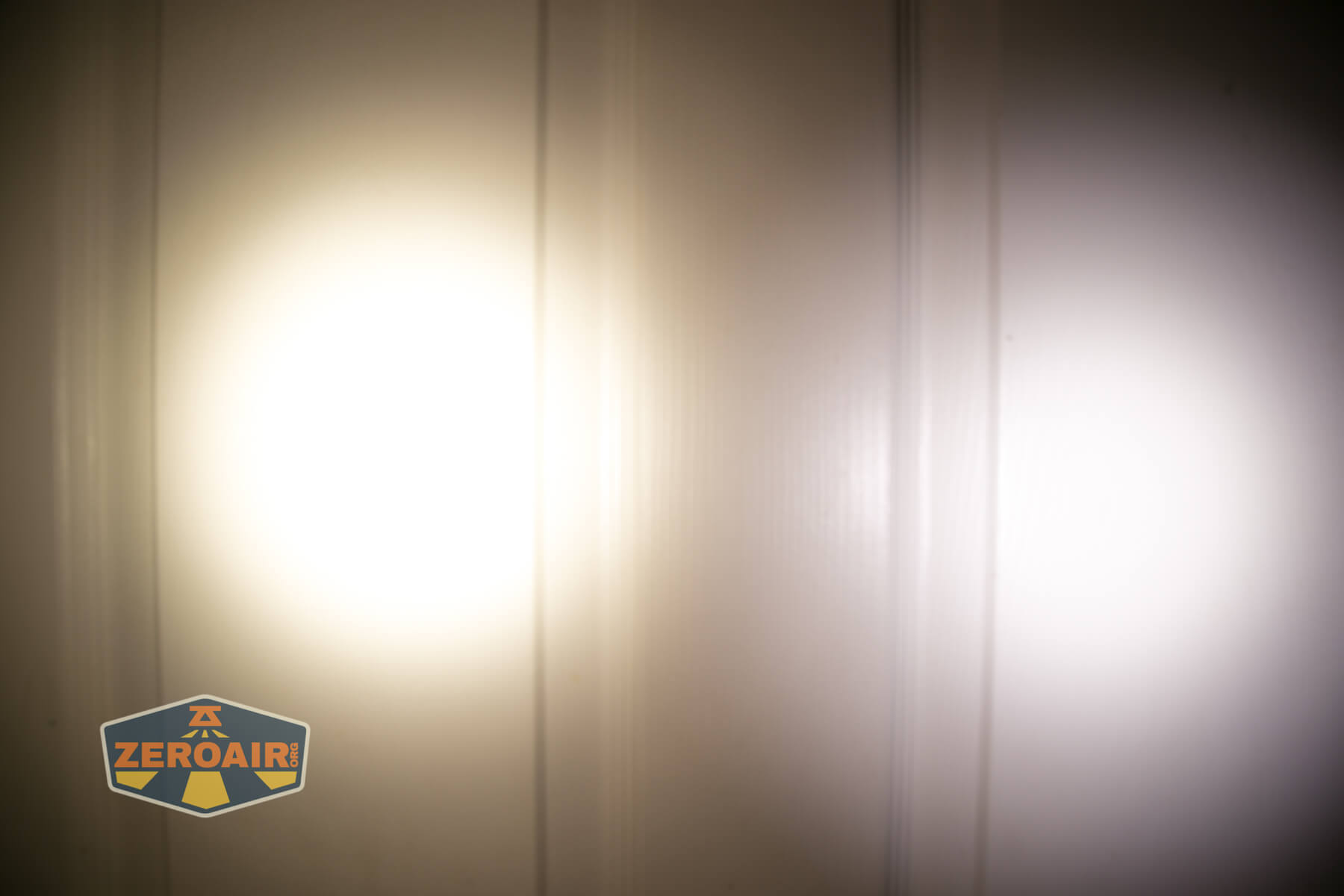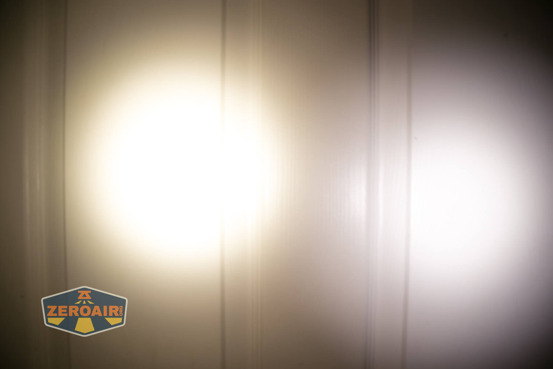 Here’s the test light with the venerable Convoy S2+. Mine’s a custom “baked” edition Nichia 219b triple. A very nice 18650 light.