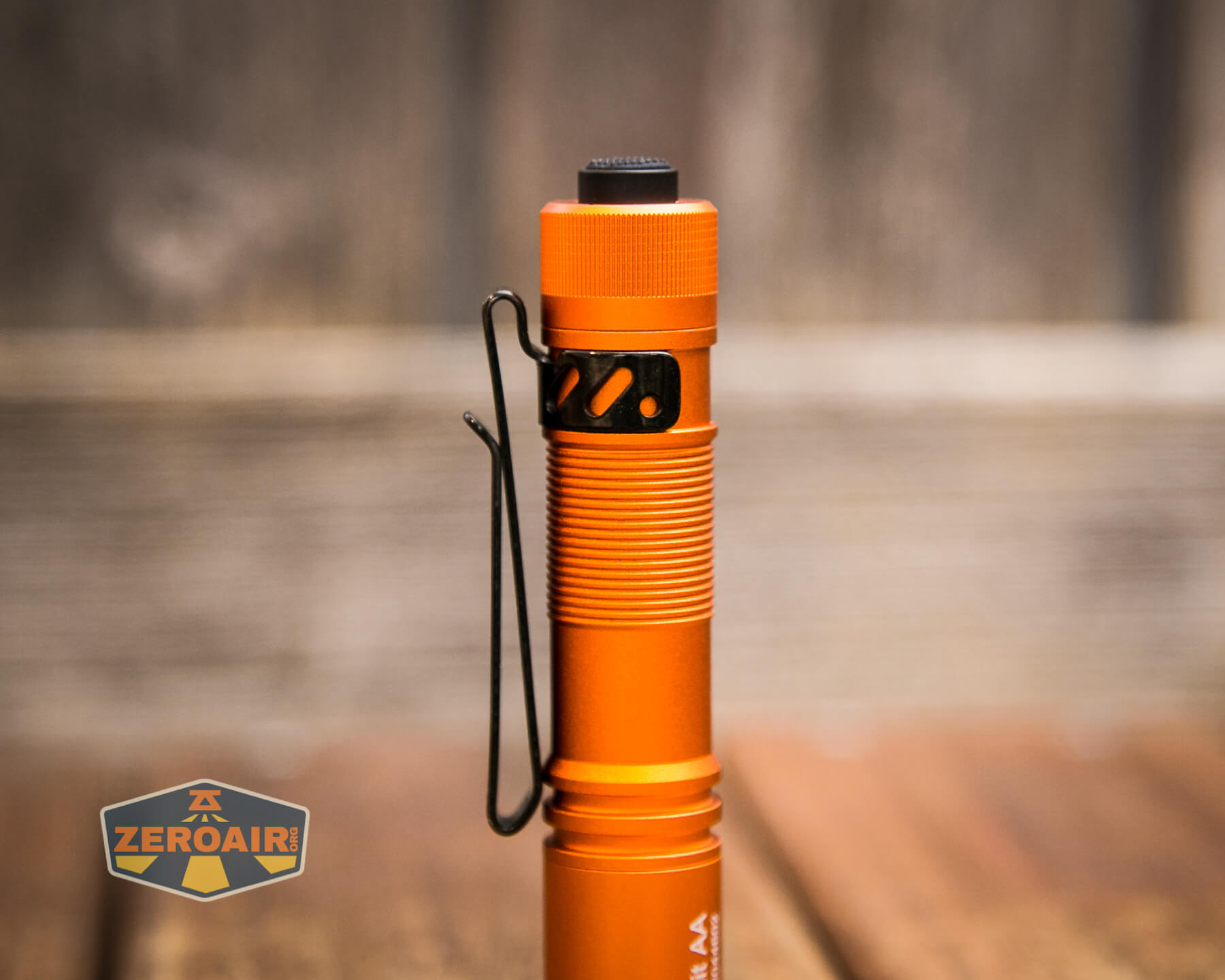 Included for carry of the Acebeam Pokelit AA flashlight is this two-way friction-fit pocket clip.