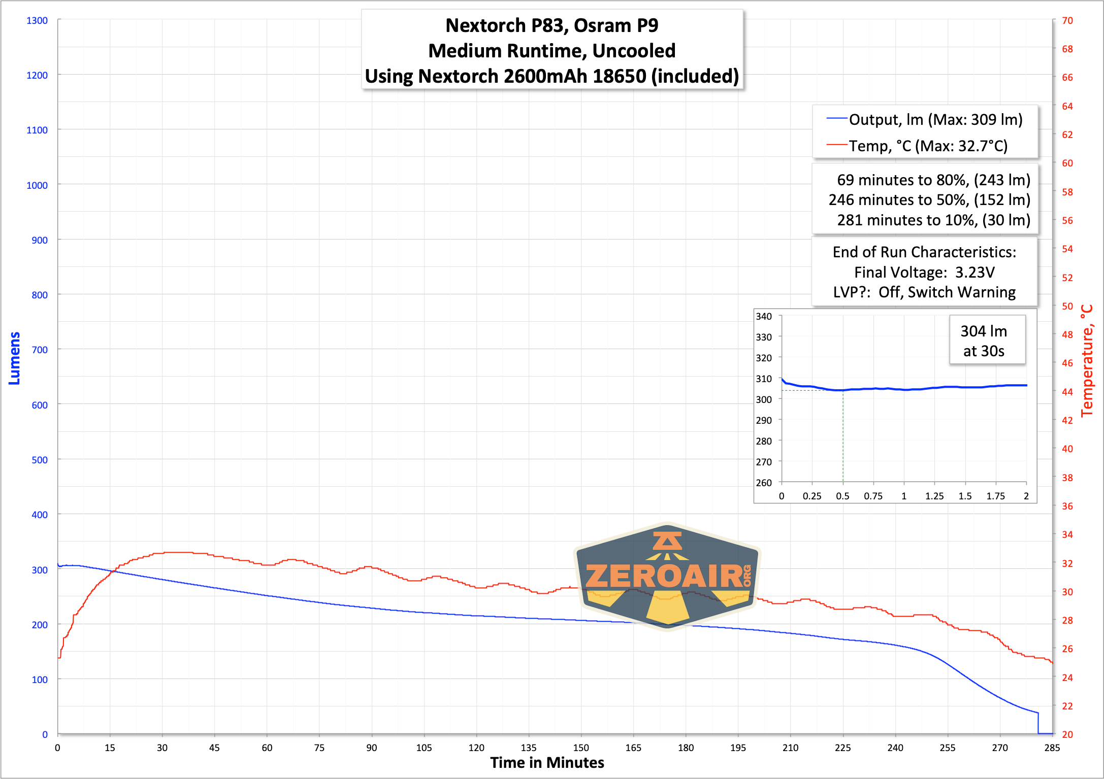 Nextorch includes the cell type that’s required for the P83. That’s a button top 18650, and in this case, has a capacity of 2600mAh.
