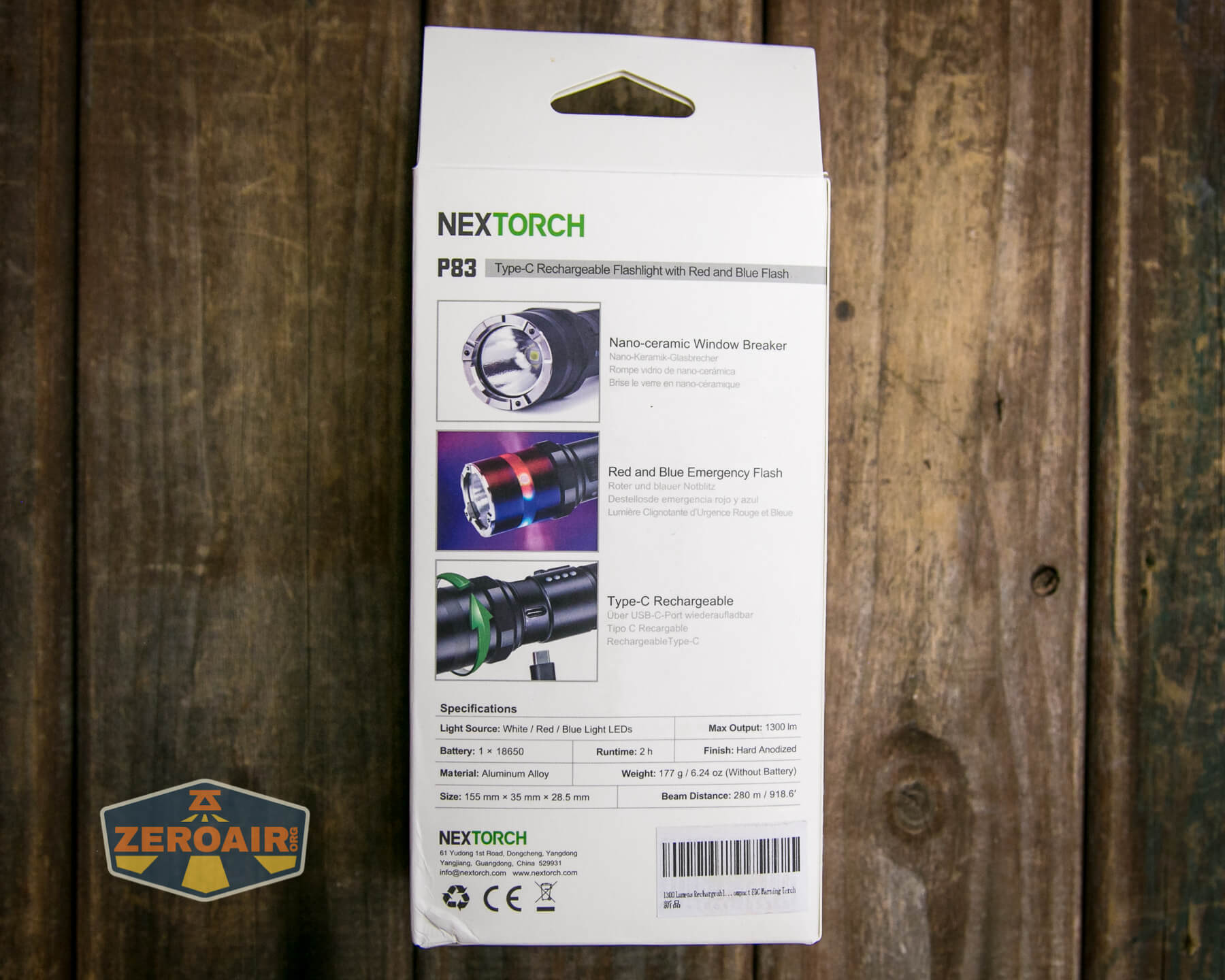 The Nextorch P83 flashlight is an interesting flashlight that offers a throwy white emitter with red and blue secondary emitters, and USB-C charging!
