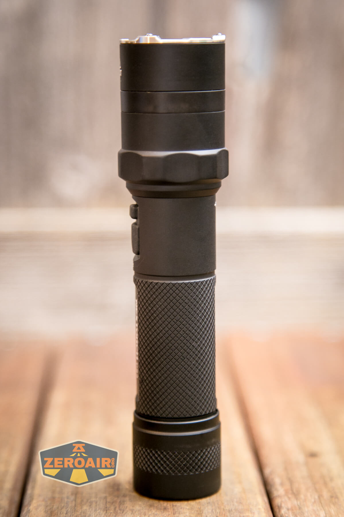 While the tactical switch is fairly great (at least it’s very suited to the purpose), I did find that the mode switch press was much too deep. It’s almost like there needs to be a nub on the inside of the switch cover to reach the actual e-switch, or the e-switch (inside) needs to be higher. This isn’t a problem except that upon rebounding from being fully clicked, the switch “almost always” (by that I mean “always” but I’m also not going to click it 10000x for a robust sample set) hits High on the downstroke but the upstroke of the switch is…. something…. enough that the light then immediately switches to Medium.