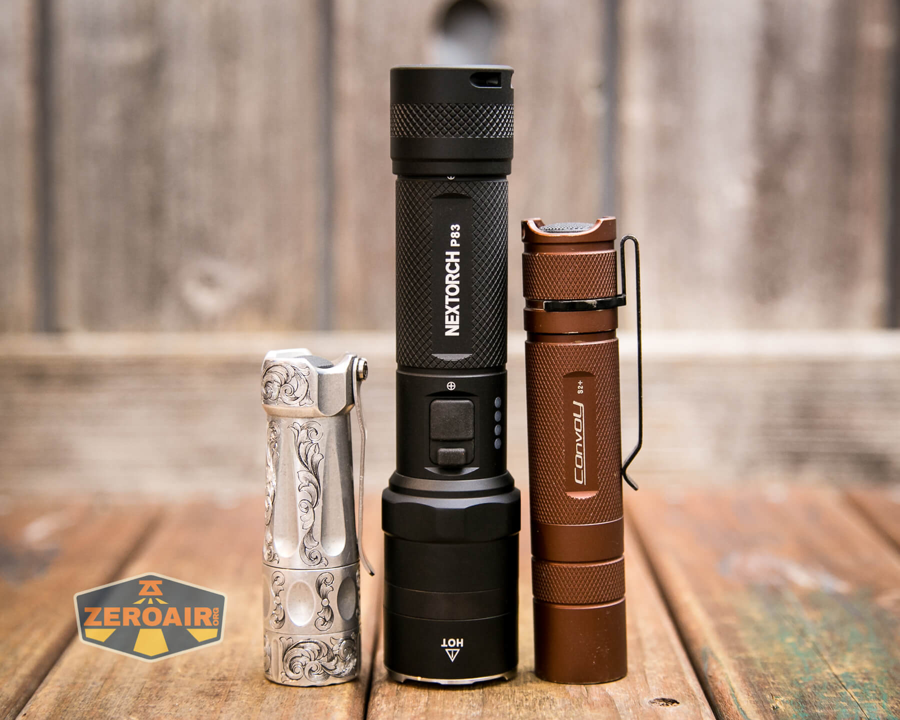 Also seen above is the light beside my custom-engraved TorchLAB BOSS 35, an 18350 light. I reviewed the aluminum version of that light in both 35 and 70 formats.