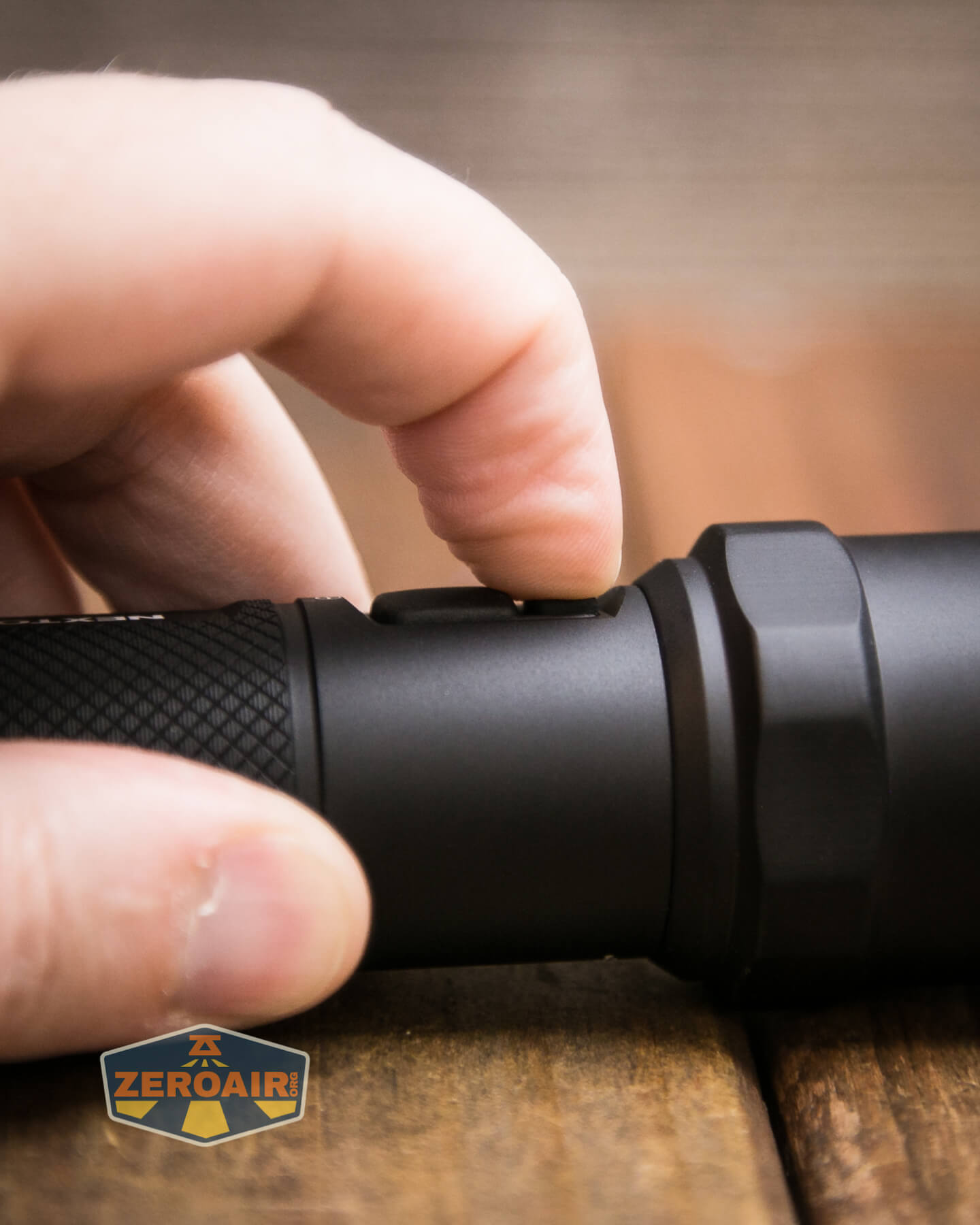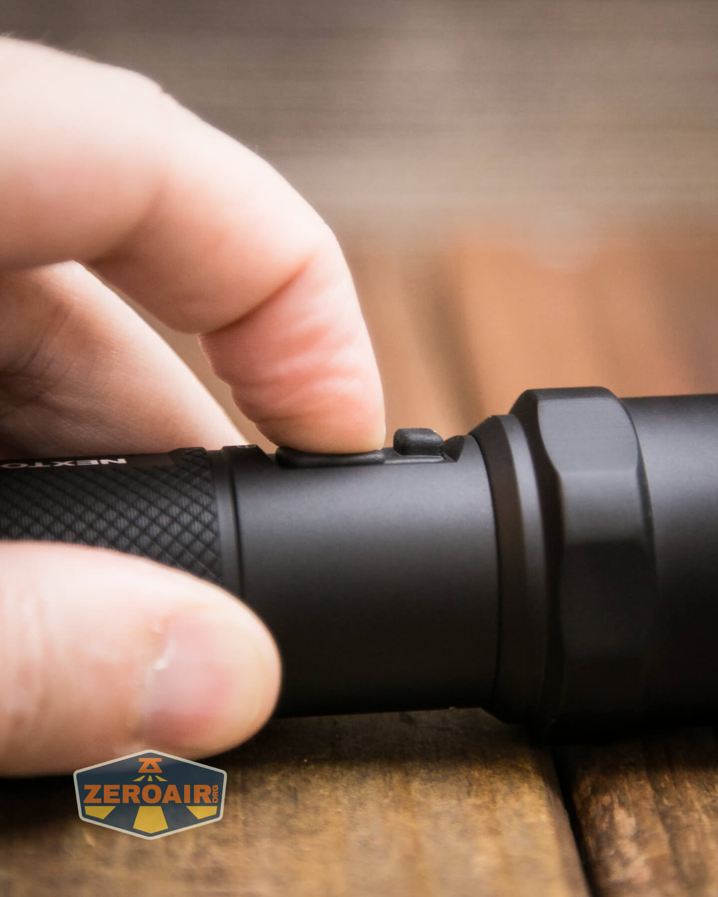 Nextorch uses an interesting switch setup here on the P83. There are two switches but they share a (“separated”) rubber cover. They’re both e-switches. This switch is exactly like the one on the Nextorch P82.